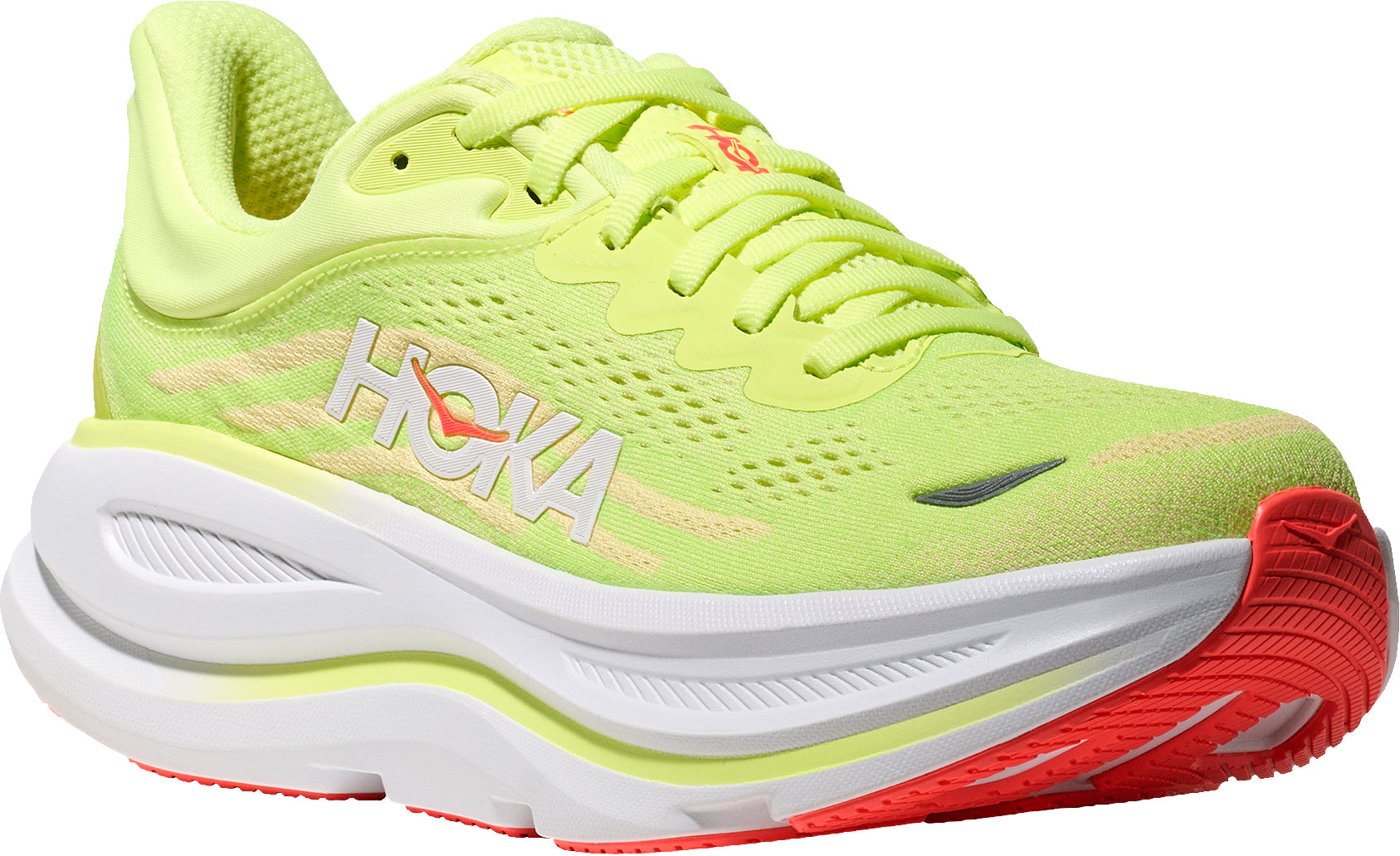 The ultra-cushioned game-changer. One of the hardest working shoes in the HOKA lineup, the Bondi 9 delivers peak plushness for everyday miles. Overhauled from top to bottom, we’ve increased the stack height and added a new premium foam midsole to deliver that soft, resilient ride that’s become synonymous with the Bondi. Elevated with a 3D molded collar and structured knit upper with zonal breathability, this ultra-cushioned cult favorite has been finished with Durabrasion rubber to combat high wear zones.