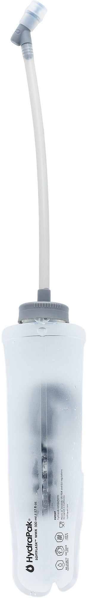 Easy, hands-free drinking with the SOFT FLASK 0.5 WITH 10" TUBE. The 500ml flask comes with a 10 inch feeding tube and bite valve, making it perfect for use with a hydration vest or pack. The soft material of the flask moulds to fit the shape of the pocket it's in for increased comfort. As you drink from the flask, it shrinks to remove any air, reducing unpleasant movement and sloshing as you run.