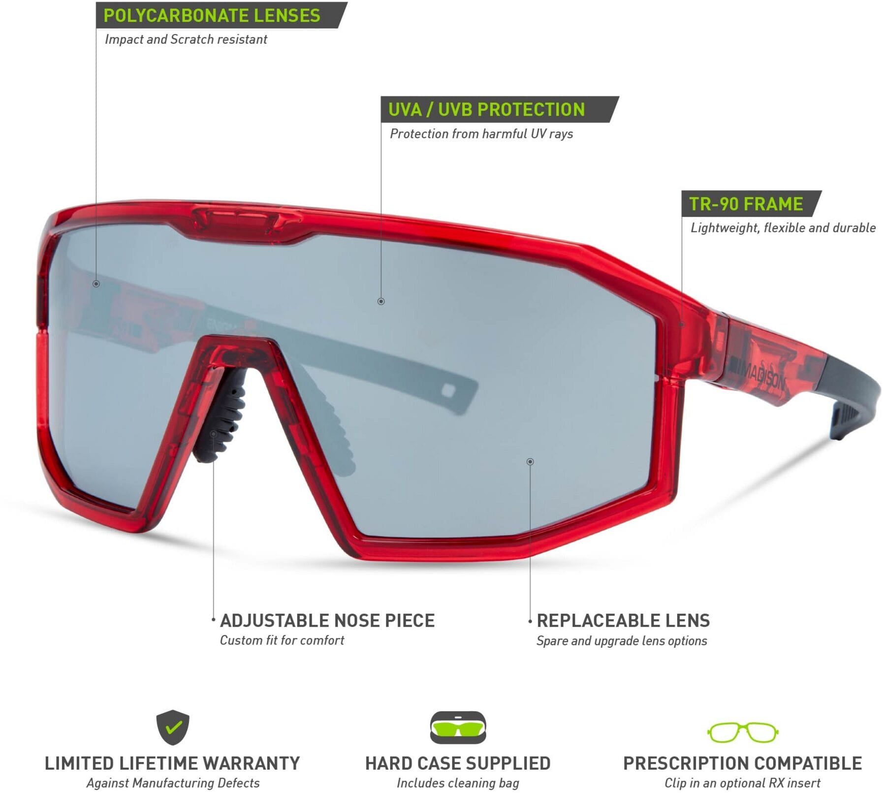 - Polycarbonate Lenses: Optics from Madison meets the highest standard for eyewear; ISO 12312. The interchangeable polycarbonate lenses are both impact and scratch-resistant. The lenses offer both supreme optical clarity and UV-A and UV-B protection