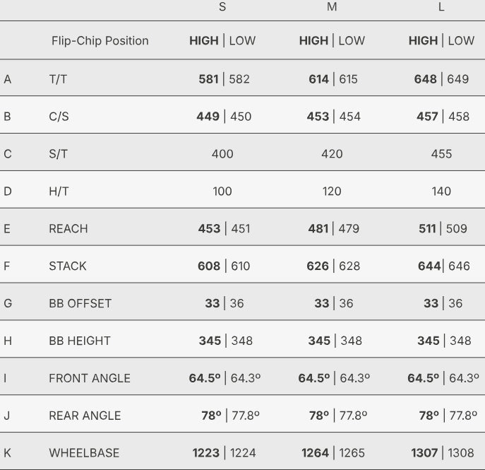 With a Flip Chip system that allows you to adjust the frame’s geometry quick and easy. Modify the head tube and rear triangle angles to suit your riding style or terrain type. One frame, four possible configurations. Maximum versatility for riders who want it all.