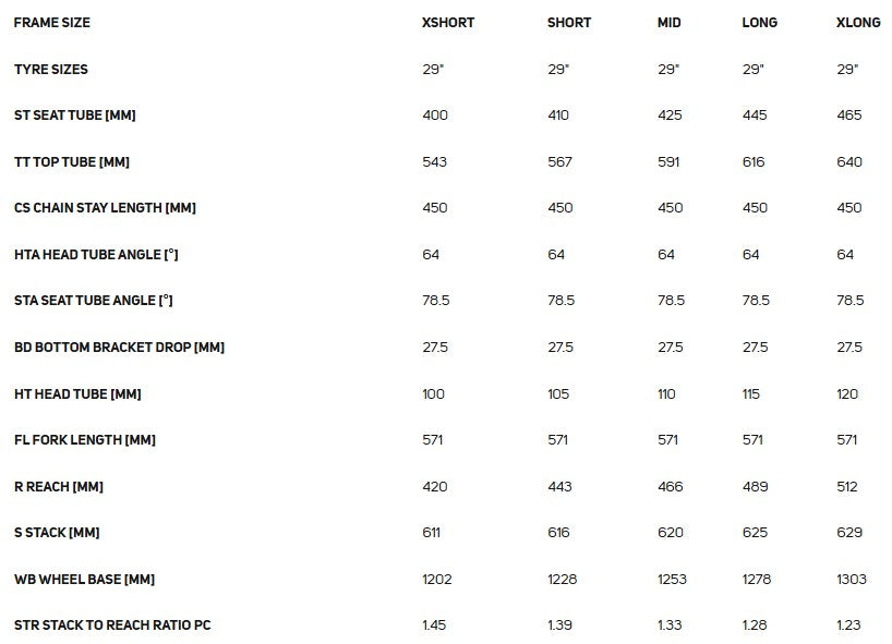 | Frame | CF4; full carbon; 160mm travel; fixed battery; Tapered head tube, 148 x 12mm axle standard. Max. tyre size 29" x 2.6" |