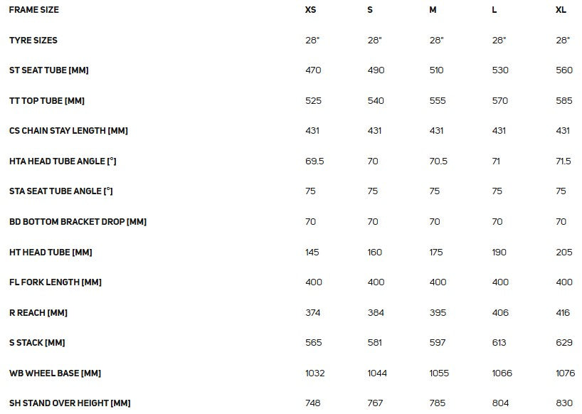 | Frame | Lite - Hydroformed 6066 triple butted aluminium, integrated battery, mounts for mudguards, rack and kickstand. 9mm QR axle standard, BSA BB standard. Max. tyre size 700 x 45c without mudguards, 700 x 42c with mudguards. 27.5" x 47c |