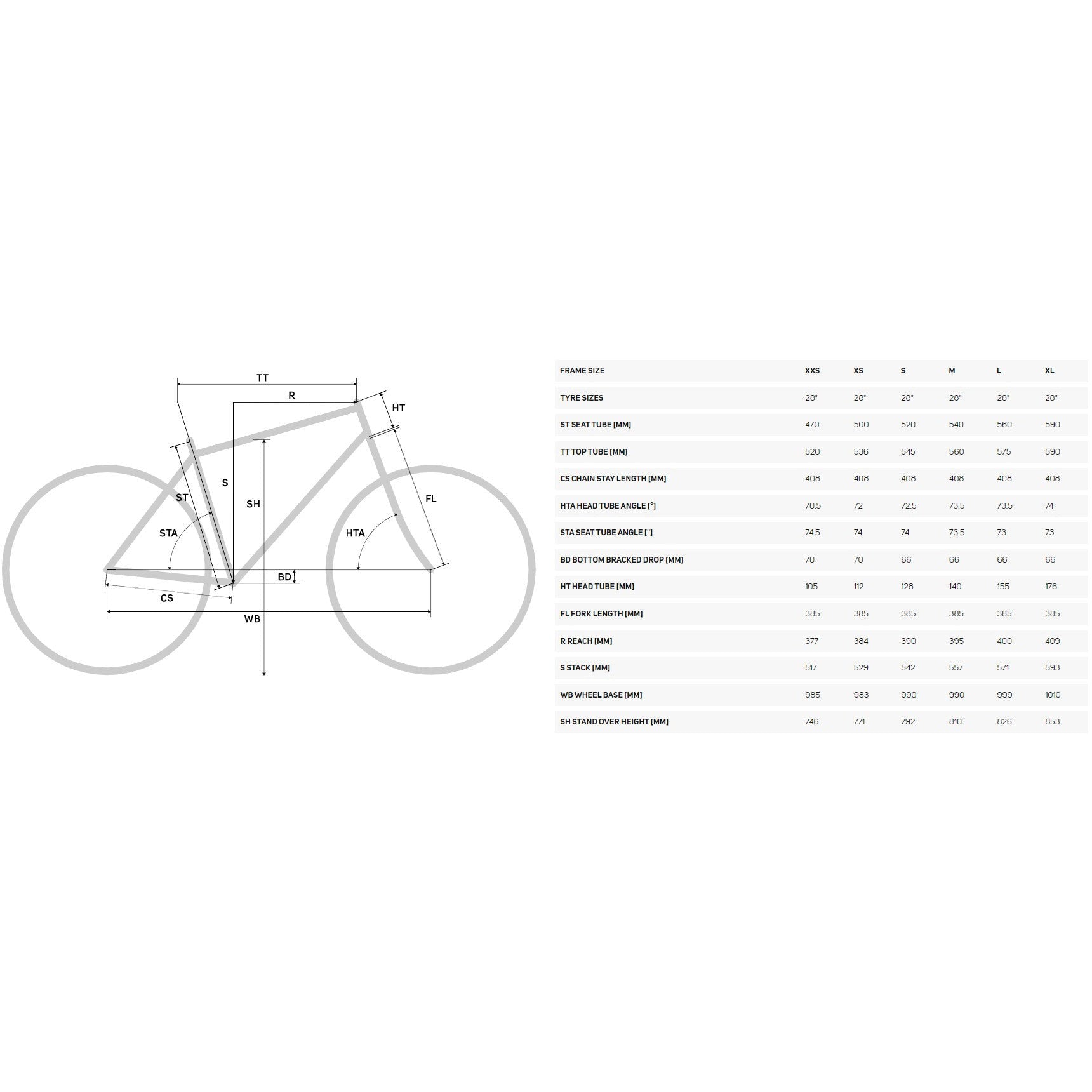 | Frame | CF3 IV - carbon with the same geometry and aeroydanmic profiling as the CF5 IV with a more budget friendly carbon lay up. Tapered headtube, Disc Cooler, BB86 BB standard, 142 x 12mm axle standard. Max tyre clearance 700 x 30c |