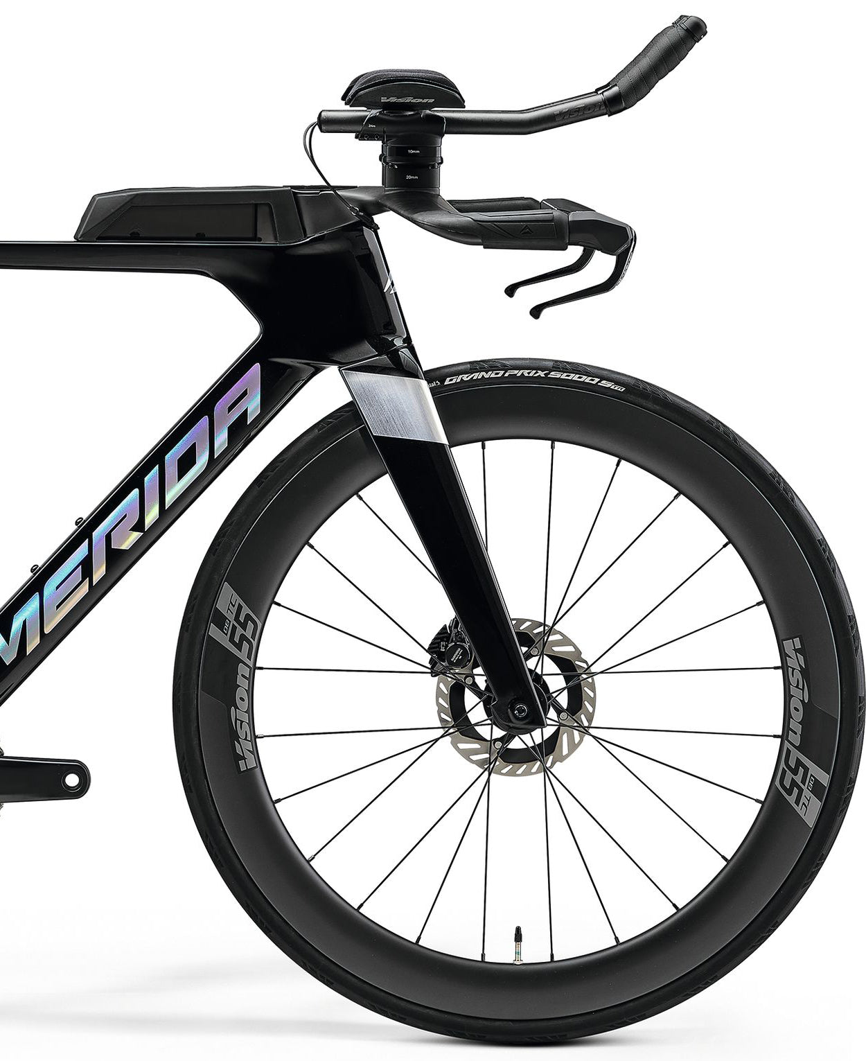 Inspired by our World Tour proved Time Warp TT time trial machine, our triathlon-specific Time Warp Tri perfectly combined aerodynamics, efficiency and comfort to give you the edge in the middle discipline of your favourite sport. Equipped with easy-to-operate and ultra-reliable disc brakes and the latest high and position adjustable armrests, the Time Warp Tri lets you find your most efficient position for a variety of courses as well as keeps you fresh and ready to attack your run. A high-end carbon frame, slip-streamed disc brake integration and perfectly incorporated additional storage capacity round up the Time Warp Tri offering and help to keep weight and aerodynamic drag super low.