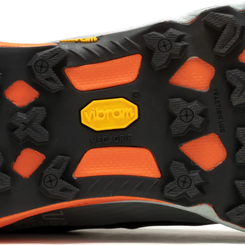 - Vibram MegaGrip high performance rubber outsole features unparalleled grip on both dry and wet surfaces