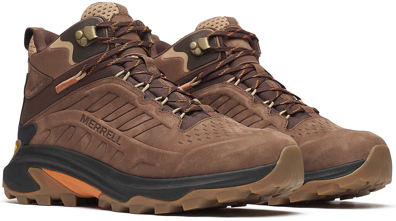 The Moab Speed 2 Leather Mid Waterproof is designed with premium nubuck leather & utilizes mixed materials for a stylized and modern approach to a leather hiking shoe for the fall season. Equipped with a waterproof membrane inside a molded leather, synthetic, and textile upper that seals out water and lets the moisture escape. 100% recycled laces webbing, breathable mesh lining, and mesh footbed cover, as well as, a 50% recycled removable EVA foam footbed that sits atop a Vibram TC5+ outsole designed to increase traction and shed debris with each step. Now you can feel really good, about feeling good.
