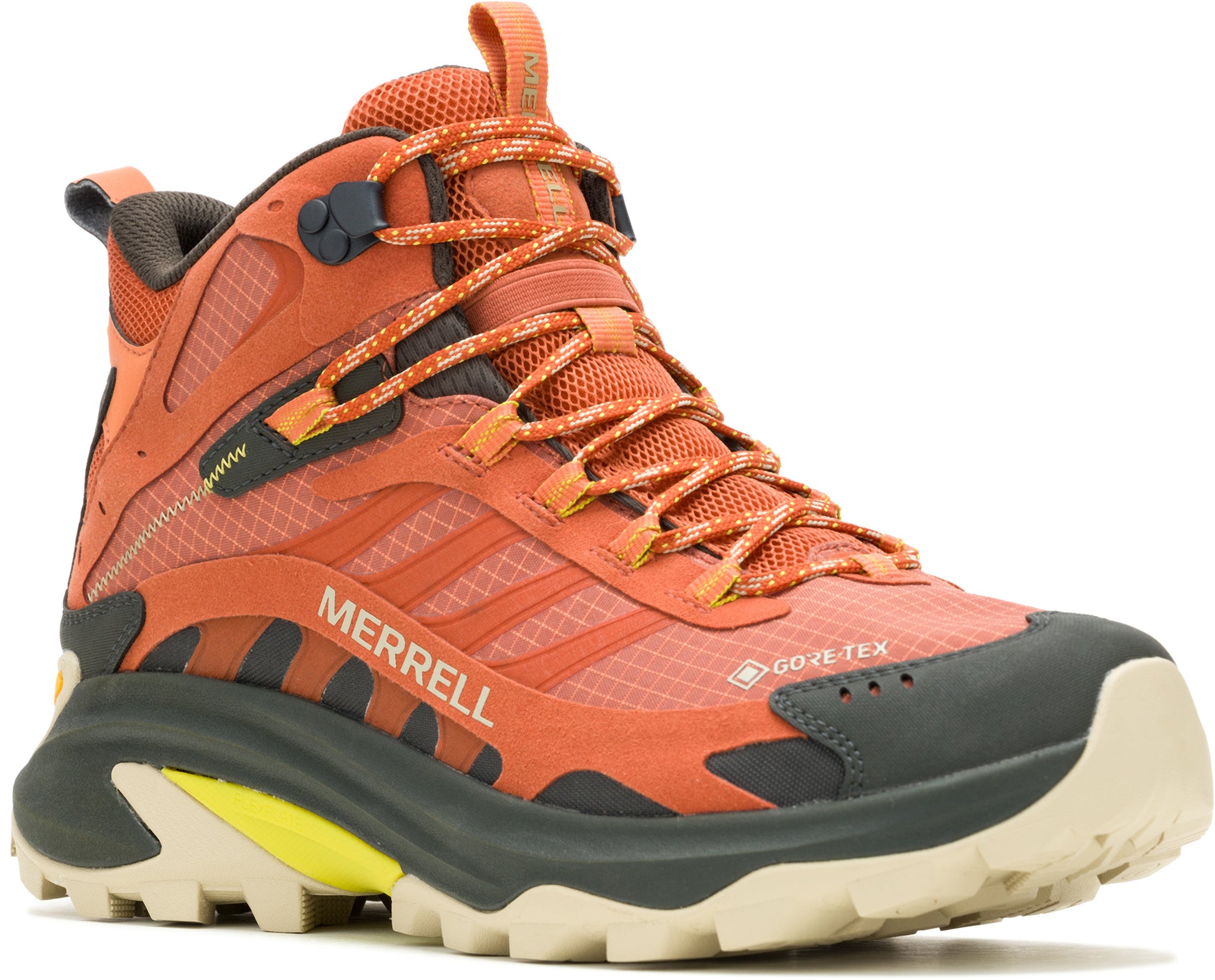 The Moab Speed 2 Mid GTX is the latest innovation in hiking from the Merrell brand pairing the knowledge and trail insights from the best-selling hiking boot, the Merrell Moab, with the latest innovations from athletic hikers across the globe. Improved traction with the incorporation of Vibram TC5+ rubber, specially formulated for Merrell, with the an all-new design and traction lugs. Hikers know that comfort is king and the all-new Moab Speed with 30% increase in foam underfoot. Breathability also significantly improved incorporating learnings from Merrell's best selling Merrell Test Lab trail running lineup. Underfoot you will find a secure fit heel counter and a full length rock plate to keep you confident on the trail in any conditions. This version also incorporate Gore-Tex, the most trusted name in waterproofing to keep your feet dry in inclement weather.