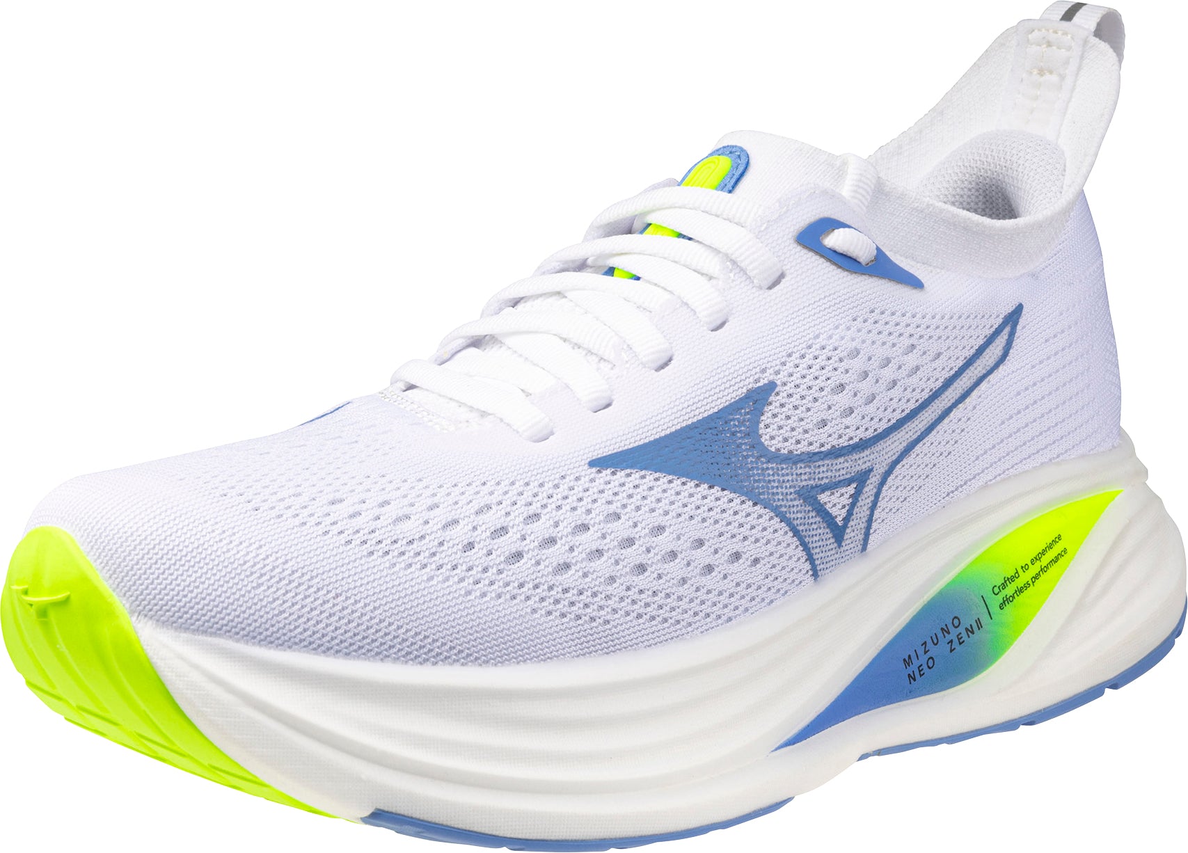 Designed for dedicated runners, this lightweight daily trainer enables smooth and efficient running with enhanced stability. The heel features a 40 mm stack height, Smooth Speed Assist design, and Mizuno Enerzy NXT, which provides exceptional cushioning and energy return while maintaining a strong ground feel. The shoe also has a newly redesigned upper combining breathable mesh and stretchy knit. It is a reliable, high-performance option for versatile uses from jogging to faster-paced runs.