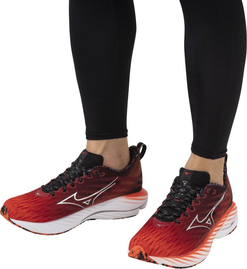 Get high-powered energy each time your foot hits the ground with this shoe loaded with Mizuno's signature technology. The cutting-edge MIZUNO ENERZY NXT in the heel wedge gives incredible energy return, while still maintaining softness and a light weight. The MIZUNO ENERZY FOAM in the top midsole also boosts energy return plus cushioning. The MIZUNO WAVE PLATE assists with forward propulsion and smooth weight transfers.