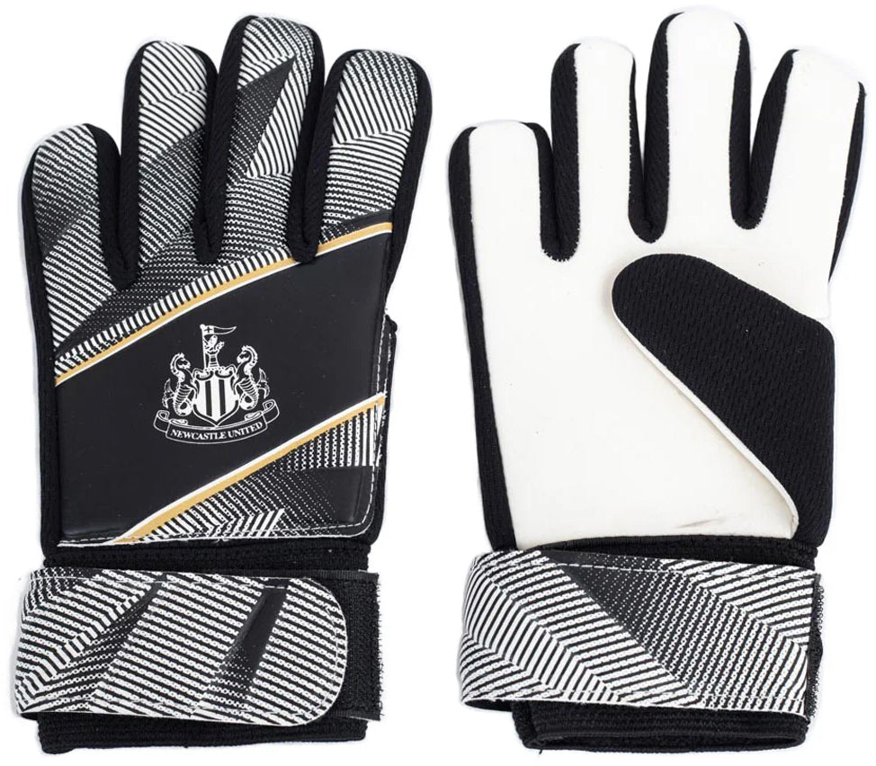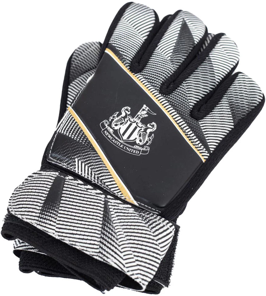 - Black and white goalkeeper gloves featuring the Newcastle crest in white.