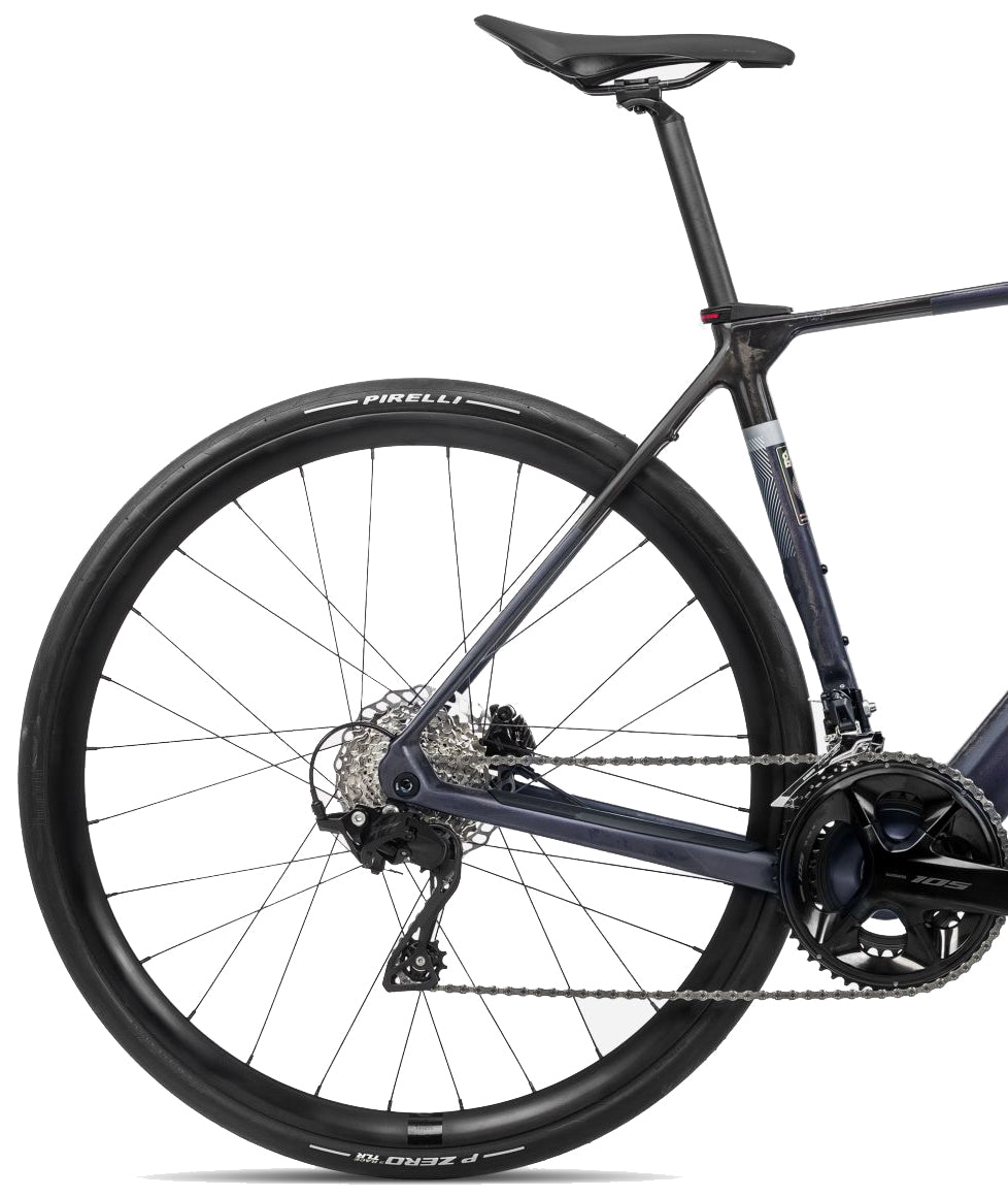 Proprietary headset spacers smooth airflow and offer easy adjustment. The entire Orbea road line offers this clean solution with OC Integrated stems and cable covers.