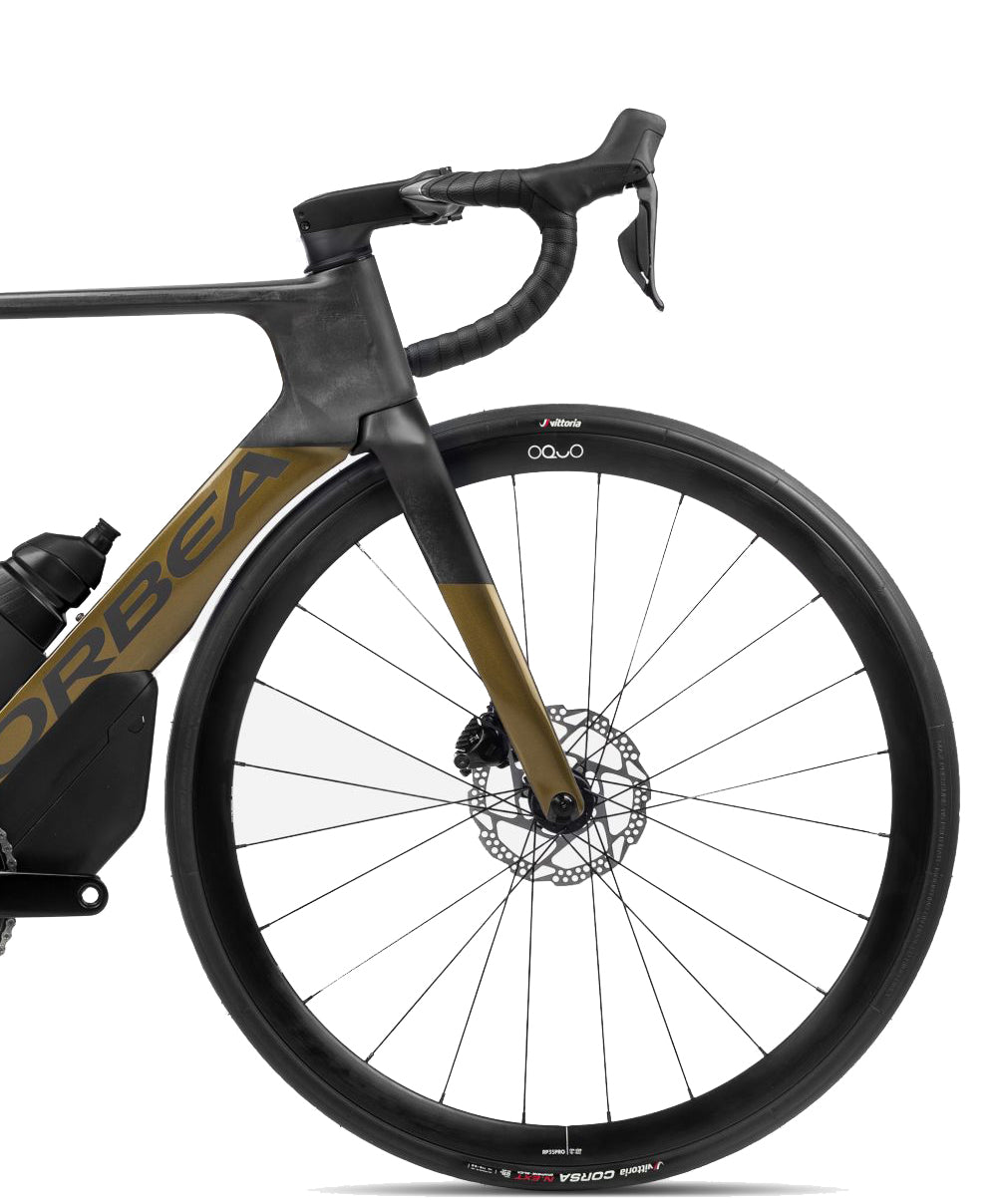 | Fork | Orbea Orca Aero OMX ICR, full carbon, 1-1/8" - 1,5" tappered head tube compatible, Thru axle 12x100mm, thread M12x2 P1, Speed release compatible dropout |