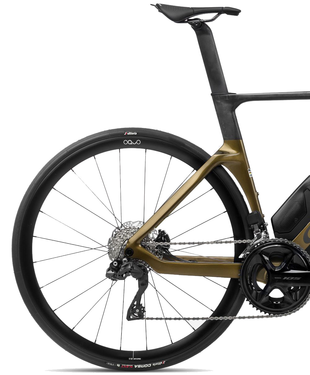 | Frame | Orbea Orca Aero Carbon OMX disc, monocoque construction, HS 1,5", BB 386, powermeter compatible, Thru Axle 12mm x 142mm rear, thread M12x2 P1, Speed release compatible, internal cable routing, EC/DC compatible. |
