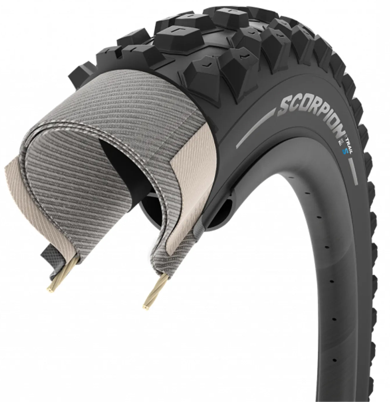 The Scorpion™ Trail S tread pattern is made up of deep and widely spaced knobs that bite into the terrain and provide maximum levels of grip. The height and rigidity of the tread increases grip in soft terrain guaranteeing traction and braking as well as excellent support when cornering. The specific spacing of the Scorpion™ Trail S tread pattern also helps the tyre to get rid of mud.