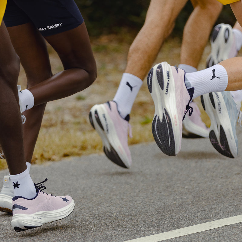 Every runner is a star – whether you're lacing up for the first time or running your 100th race. From tanks and tops to shorts and tights, PUMA x SAYSKY has something for every runner. Featuring NITROFOAM™ cushioning and PWRPLATE propulsion, the Deviate 3 delivers a responsive, snappy ride. Engineered mesh and PUMAGRIP outsole ensure breathability and traction. This highly responsive shoe delivers a snappy ride, infusing speed into every stride.