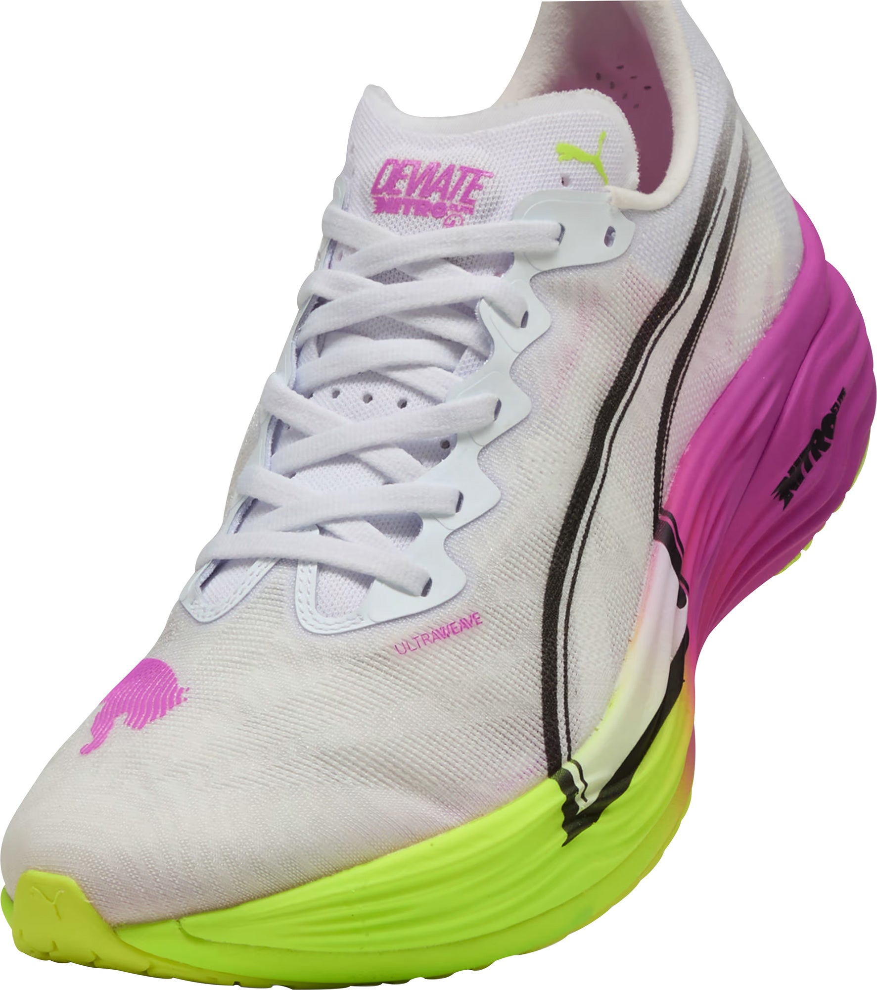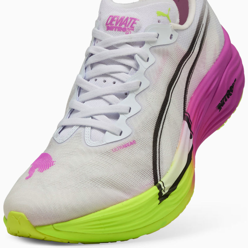 Hit turbo speed in the lightweight super shoe made for the fastest marathoner and weekend road racers. Redesigned and re-energized to be the ultimate race day shoe, the Deviate Elite 3 weighs 17g less than its predecessor and features a greater stack height with new and improved NITROFOAM™ ELITE. The race day go-to is built on a stiffer carbon fiber PWRPLATE for a more powerfully responsive ride that makes racing fast feel even easier.