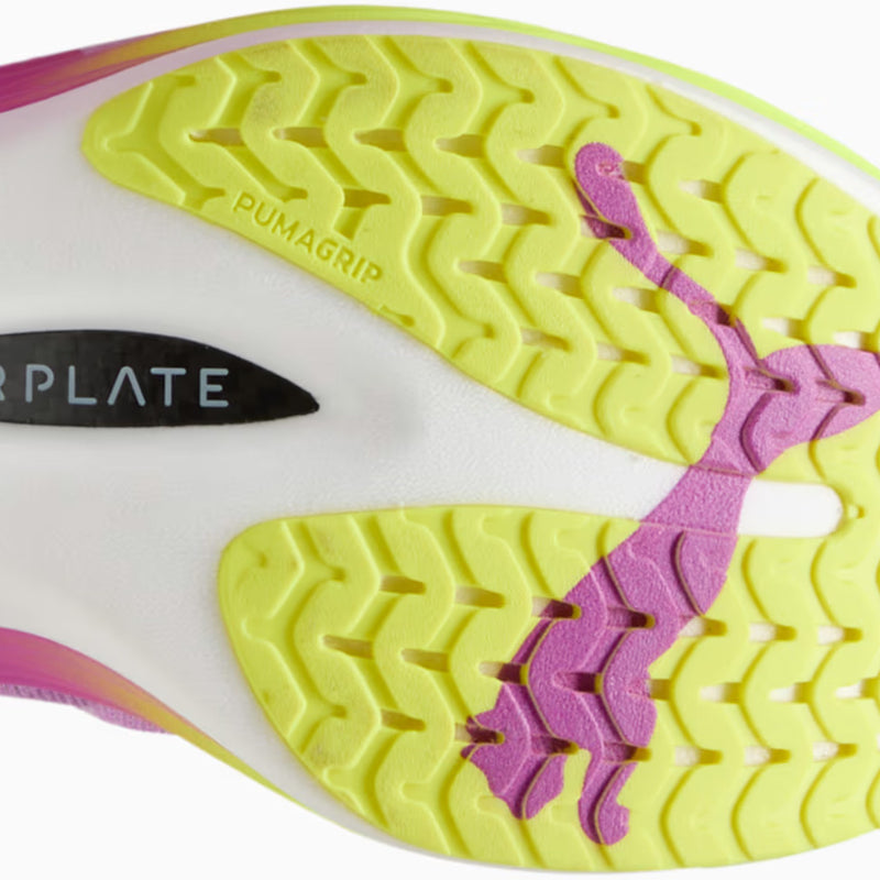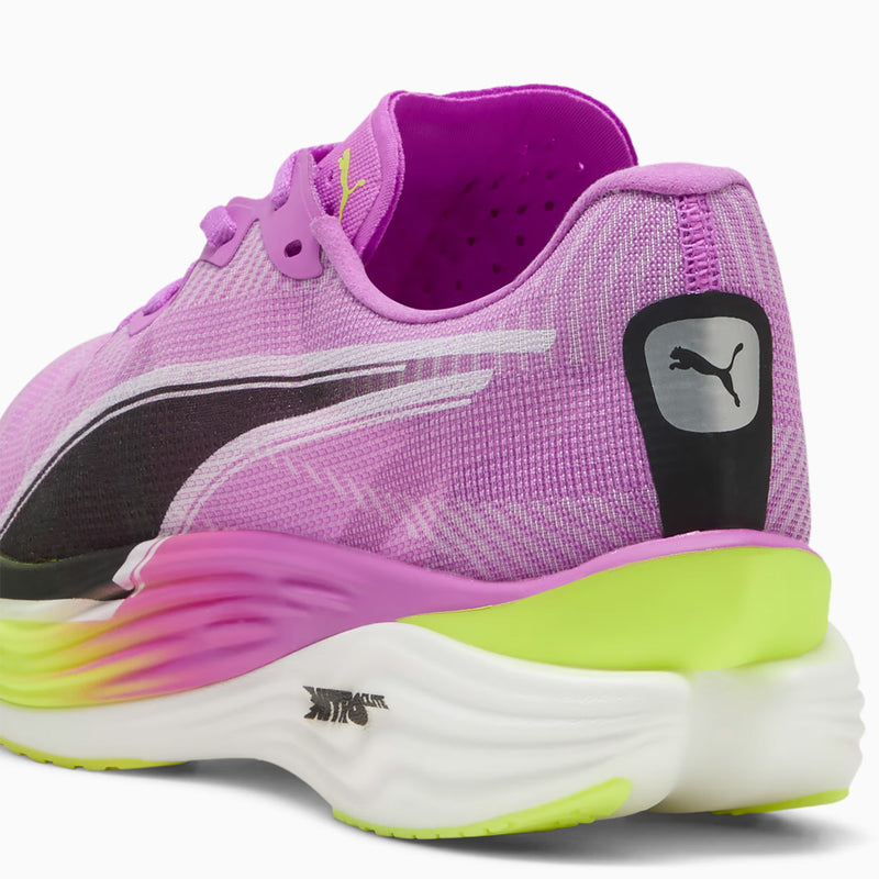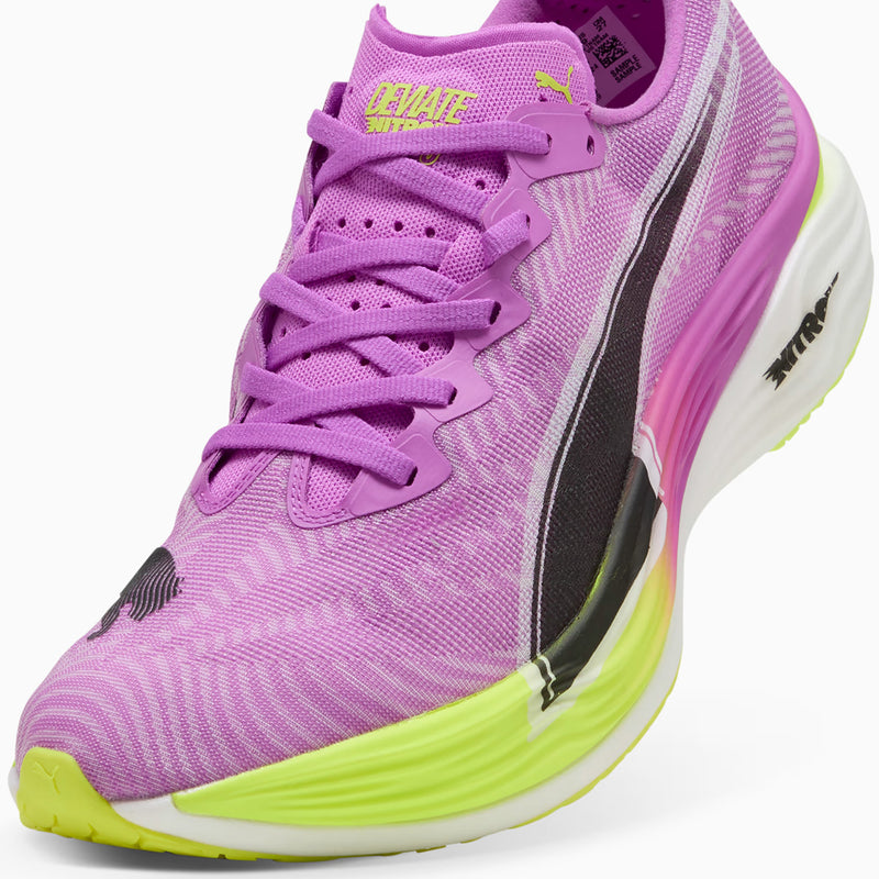 Hit turbo speed. The Deviate NITRO™️ Elite 3 is a running shoe redesigned for lightweight, race day propulsion. A carbon fibre PWRPLATE ensures stability and maximum running efficiency, while NITROFOAM™ ELITE offers supreme cushioning that won't weigh you down. It's a running go-to made with lightweight mono-mesh and durable PUMAGRIP rubber for multi-surface traction and an effortless run.