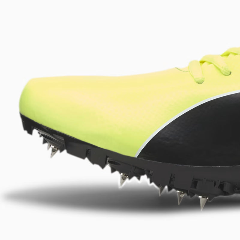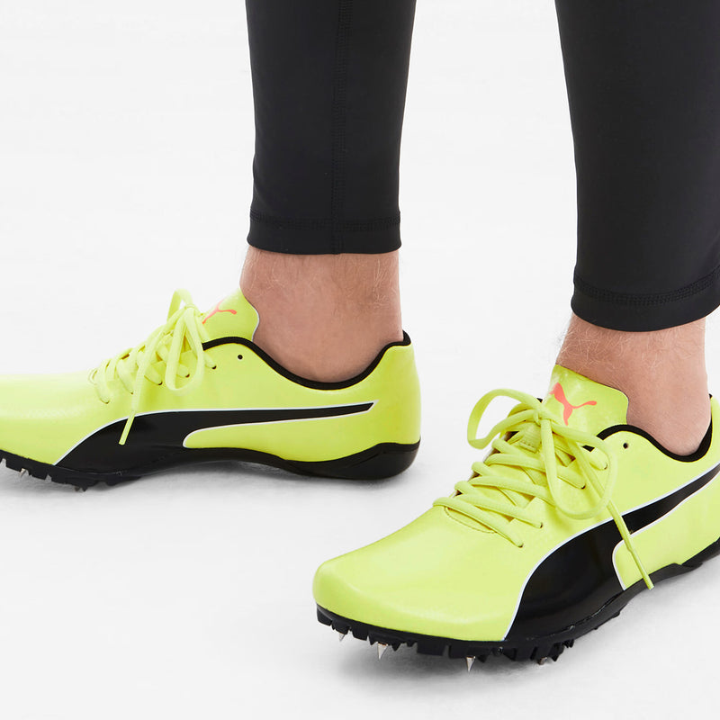 Sprint like the fastest man in the world with the evoSPEED Prep Sprint from PUMA. The full-length Pebax plate with 8 spikes gives you aggressive traction on the track for maximum speed. The soft, aerodynamic synthetic upper wraps and secures your foot so you can focus on the finish line. The die-cut Eco Ortholite sockliner provides ultra cushioning and comfort. Thanks to the seamless upper construction, irritation is minimized and use without socks is possible.