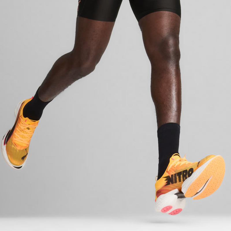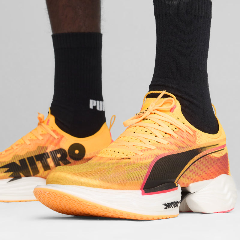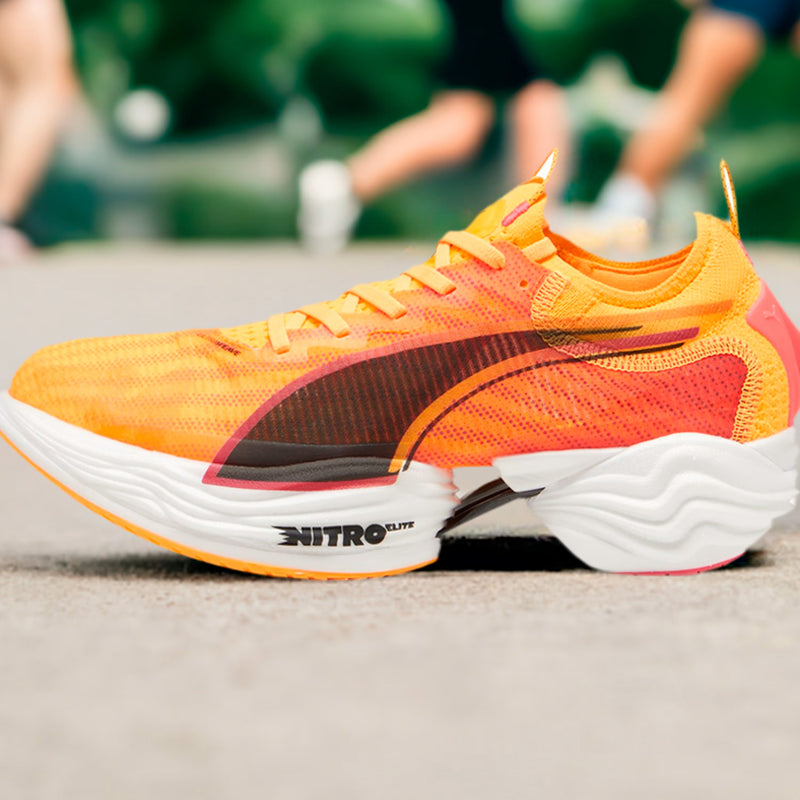 FAST-R NITRO™ ELITE 2 is PUMA’s ultimate race-day footwear with enhanced NITROFOAM™ ELITE and PWRPLATE technologies. Enjoy a more propulsive ride and optimized running economy with increased stack heights and an aggressive shape. The ULTRAWEAVE upper ensures a lightweight and secure fit, while PWRTAPE support keeps you firmly in control as you conquer your race-course. From short distances to marathons, this shoe offers unbeatable speed and cushioning for your best performance yet.