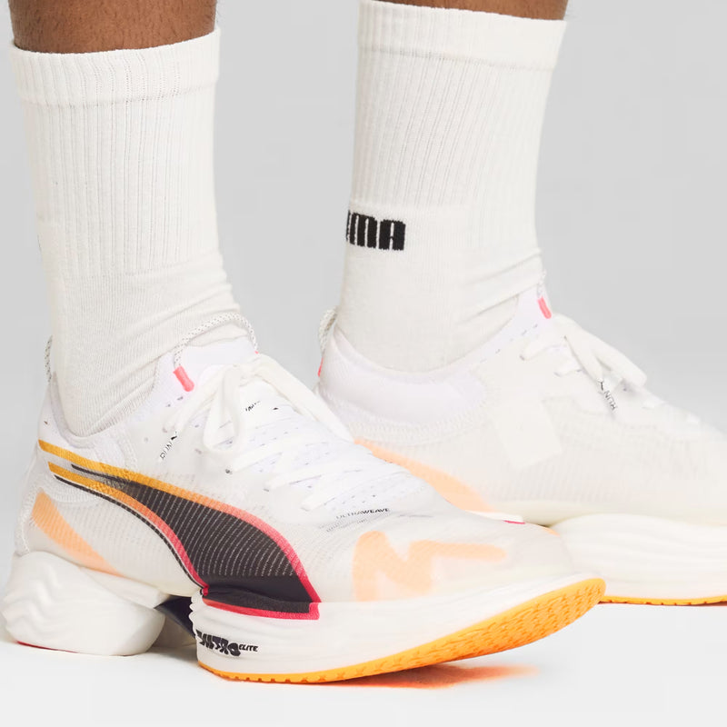 FAST-R NITRO™ ELITE 2 is PUMA’s ultimate race-day footwear with enhanced NITROFOAM™ ELITE and PWRPLATE technologies. Enjoy a more propulsive ride and optimized running economy with increased stack heights and an aggressive shape. The ULTRAWEAVE upper ensures a lightweight and secure fit, while PWRTAPE support keeps you firmly in control as you conquer your race-course. From short distances to marathons, this shoe offers unbeatable speed and cushioning for your best performance yet.