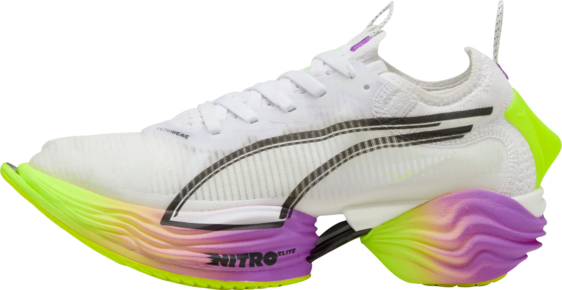 FAST-R NITRO™ ELITE 2 is PUMA’s ultimate race-day footwear with enhanced NITROFOAM™ ELITE and PWRPLATE technologies. Enjoy a more propulsive ride and optimized running economy with increased stack heights and an aggressive shape. The ULTRAWEAVE upper ensures a lightweight and secure fit, while PWRTAPE support keeps you firmly in control as you conquer your race-course. From short distances to marathons, this shoe offers unbeatable speed and cushioning for your best performance yet.