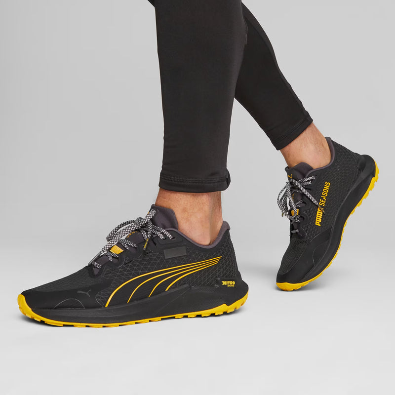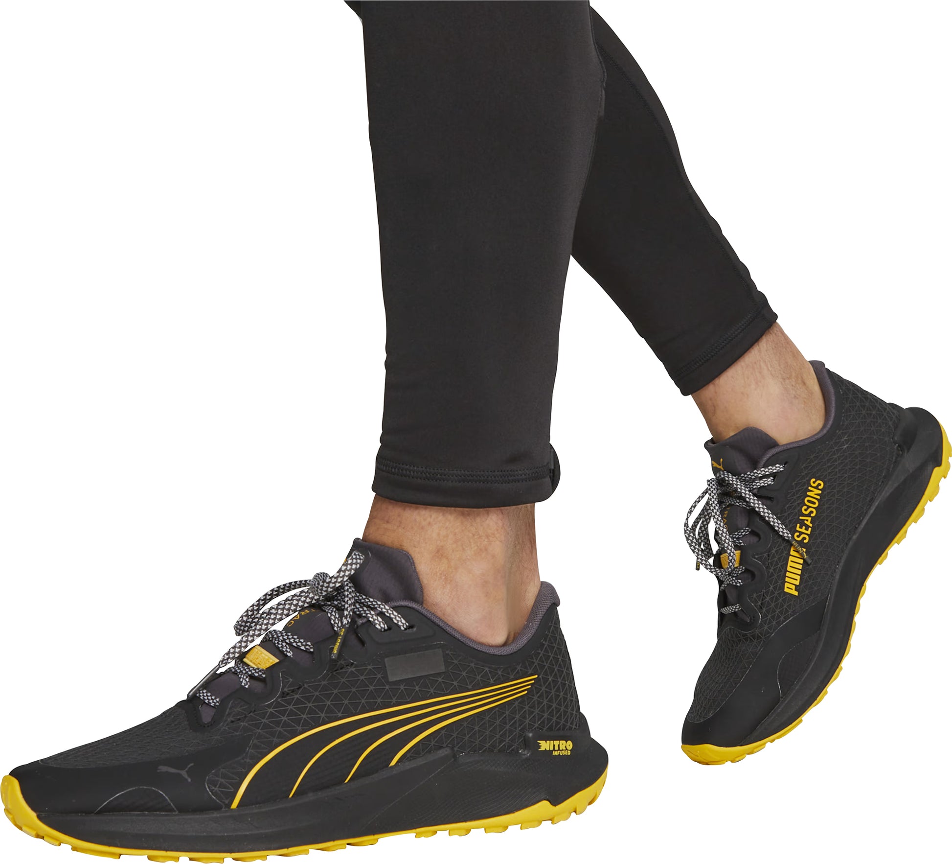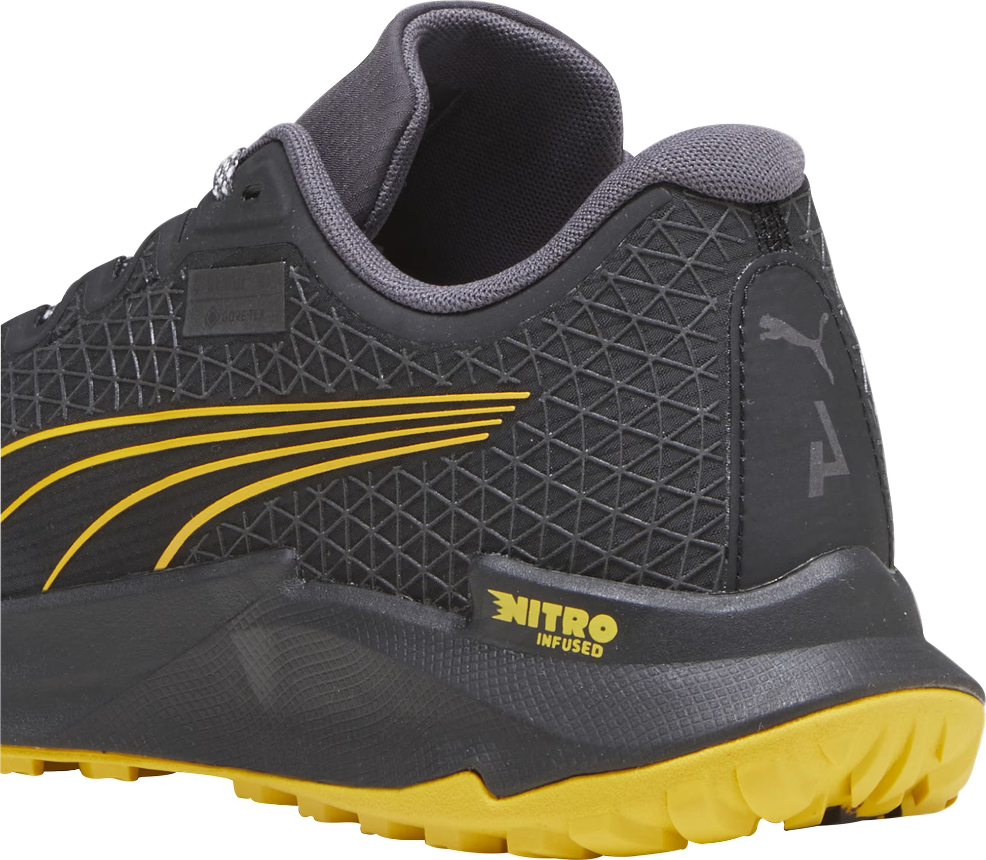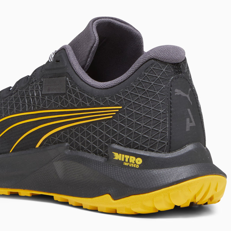 The lightweight running shoe that will do it all, no matter the terrain or the weather – the Fast-Trac NITRO GORE-TEX®. It’s capable on any surface, including loose trails and gravel, thanks to the dual-foam midsole – combining full-length NITRO foam and a layer of ProFoamLite – and the durable PUMAGRIP ATR outsole. Integrated eyestays allow for a snug fit, and details at the toe provide both drainage and protection from debris. As a bonus, this version features a waterproof GORE-TEX® lining so you can take on the trails in all weathers.