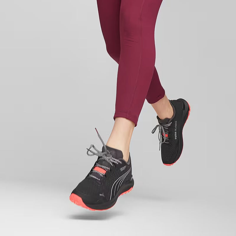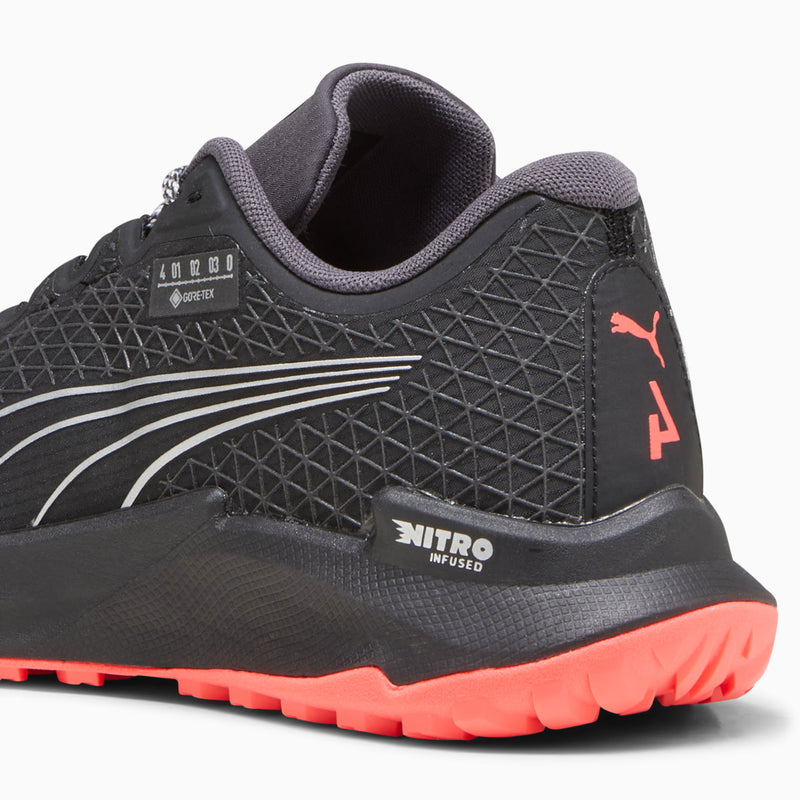 The lightweight running shoe that will do it all, no matter the terrain or the weather – the Fast-Trac NITRO GORE-TEX®. It’s capable on any surface, including loose trails and gravel, thanks to the dual-foam midsole – combining full-length NITRO foam and a layer of ProFoamLite – and the durable PUMAGRIP ATR outsole. Integrated eyestays allow for a snug fit, and details at the toe provide both drainage and protection from debris. As a bonus, this version features a waterproof GORE-TEX® lining so you can take on the trails in all weathers.