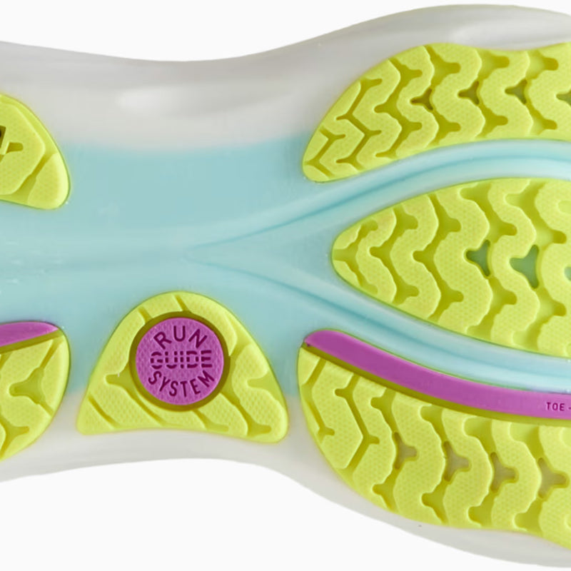 RUNGUIDE SYSTEM: Supportive midsole geometry and TPU heel support combine to guide and support a healthy running motion