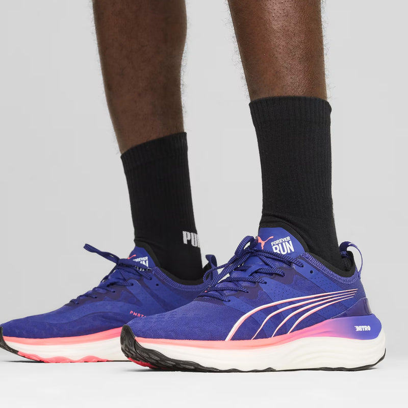 The ForeverRun NITRO™ dawns a new era of support and guidance for all runners, providing the softness of a full NITRO™ midsole without compromising stability. It features a newly developed NITRO™ midsole with two different densities – a softer core with a firmer rim – and an asymmetrical heel counter to hold the foot in place through every stride. The theme also continues on the outsole, thanks to a wider medial rubber segment stabilising late-stage pronation. In short, it's the perfect blend of support and cushion.