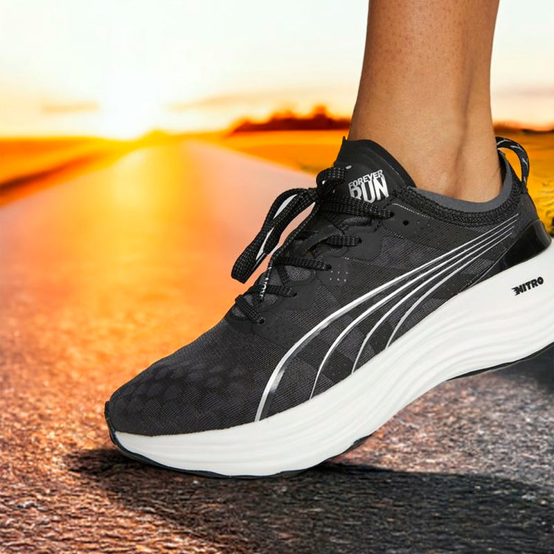The ForeverRun NITRO™ dawns a new era of support and guidance for all runners, providing the softness of a full NITRO™ midsole without compromising stability. It features a newly developed NITRO™ midsole with two different densities – a softer core with a firmer rim – and an asymmetrical heel counter to hold the foot in place through every stride. The theme also continues on the outsole, thanks to a wider medial rubber segment stabilising late-stage pronation. In short, it's the perfect blend of support and cushion.