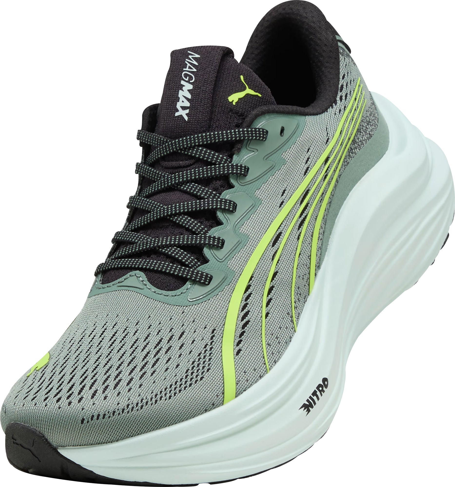 Experience an exhilarating bounce like never before with the MagMax NITRO™. Boasting an impressive amount of cutting-edge NITROFOAM™ technology, these shoes will effortlessly propel you from one mile to the next, filling your stride with excitement and ease. Around the foot you'll find a comfortable mesh, deluxe knitted tongue and cushioned heel. PUMAGRIP protects the precious NITROFOAM™ and provides top-notch traction keeping you steady on your feet.