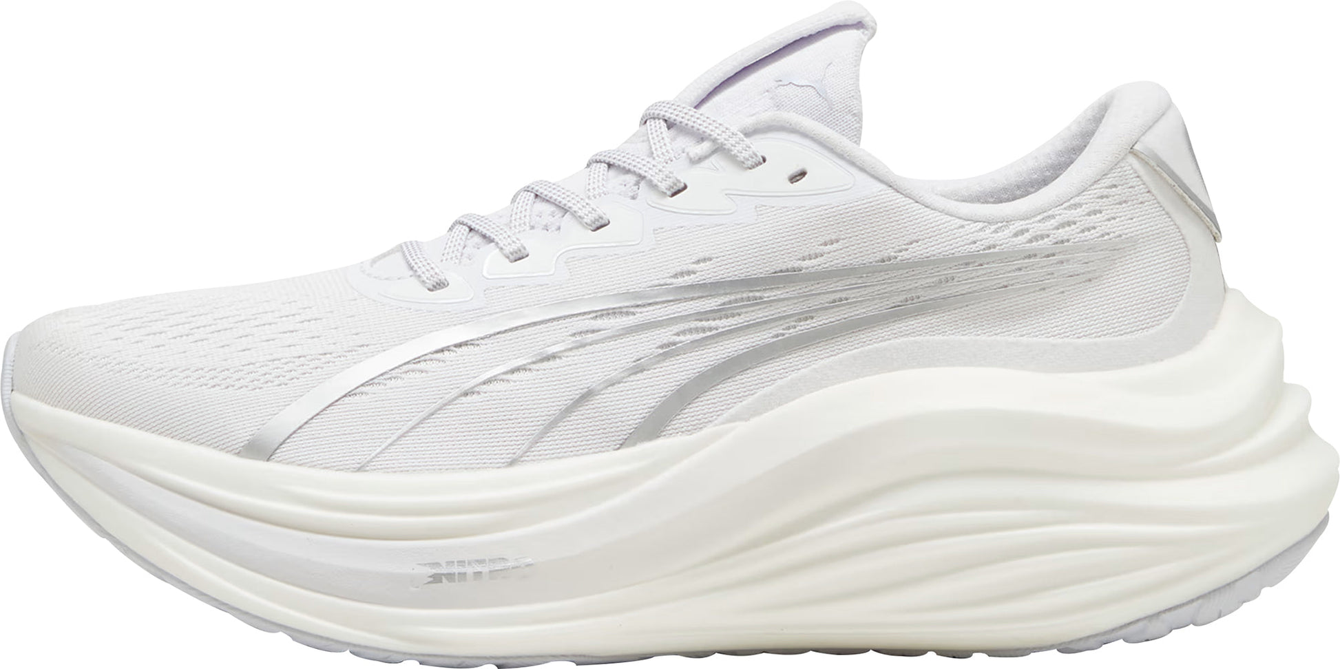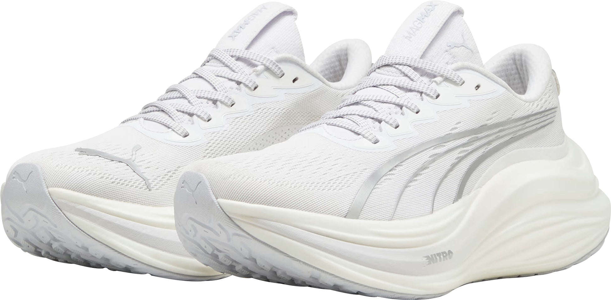Experience an exhilarating bounce like never before with the MagMax NITRO™. Boasting an impressive amount of cutting-edge NITROFOAM™ technology, these shoes will effortlessly propel you from one mile to the next, filling your stride with excitement and ease. Around the foot you'll find a comfortable mesh, deluxe knitted tongue and cushioned heel. PUMAGRIP protects the precious NITROFOAM™ and provides top-notch traction keeping you steady on your feet.