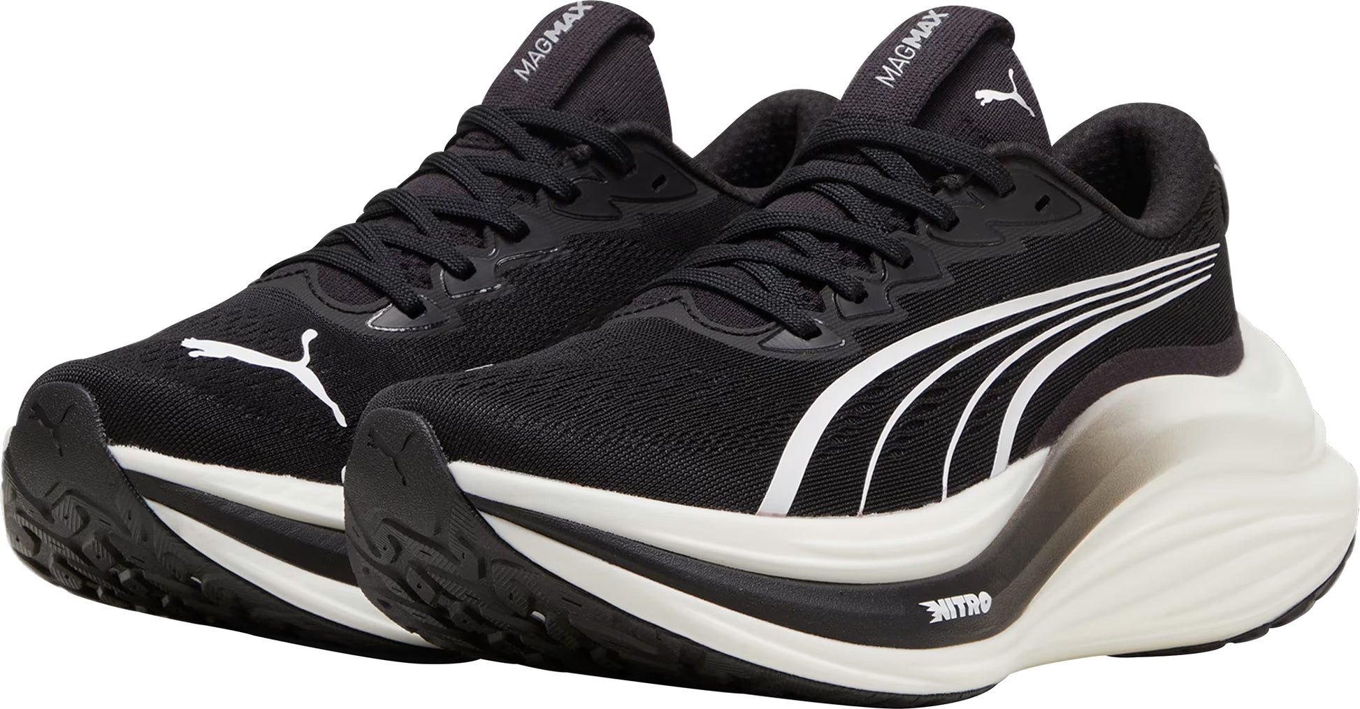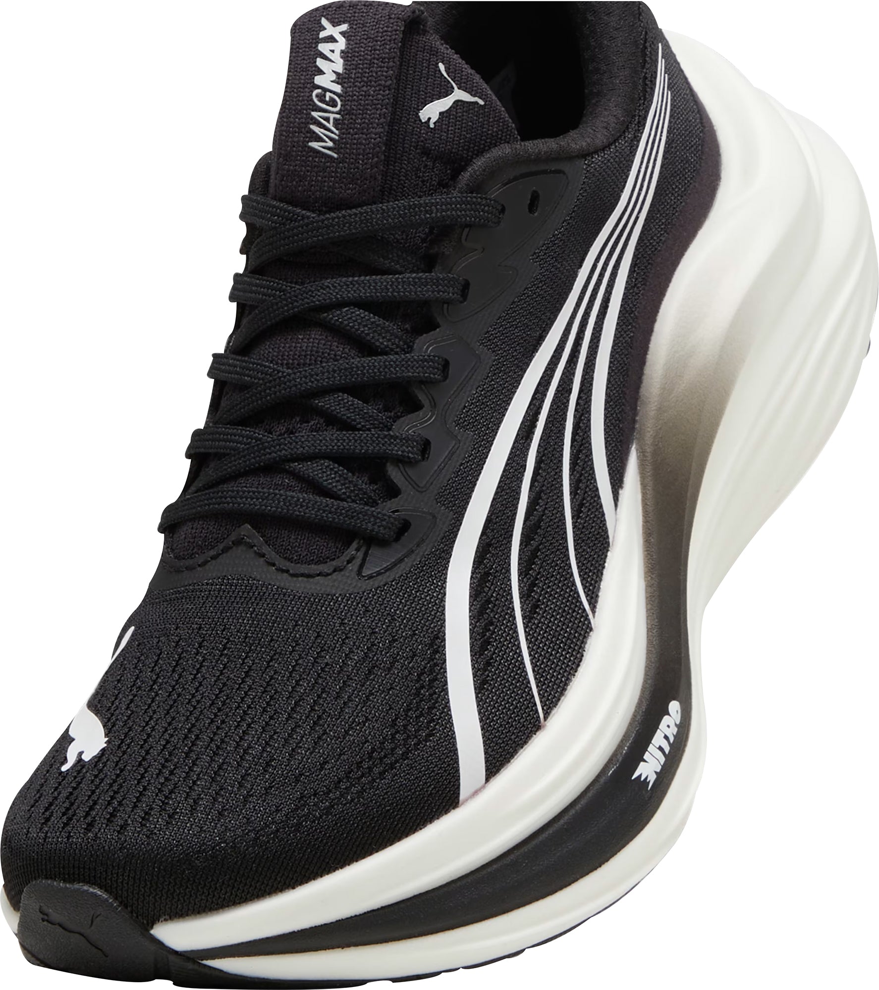 Experience an exhilarating bounce like never before with the MagMax NITRO™. Boasting an impressive amount of cutting-edge NITROFOAM™ technology, these shoes will effortlessly propel you from one mile to the next, filling your stride with excitement and ease. Around the foot you'll find a comfortable mesh, deluxe knitted tongue and cushioned heel. PUMAGRIP protects the precious NITROFOAM™ and provides top-notch traction keeping you steady on your feet.