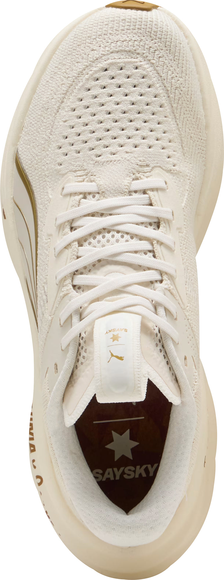 Magnify 3 is built for supreme cushioning and all-day comfort. Designed for any run where softness and support matter most, it features a breathable engineered synthetic upper and stacked NITROFOAM™ cushioning for a smooth, responsive ride. Whether you're going the distance or running purely for the joy of it, this shoe is made to magnify your comfort and keep you moving. This PUMA x SAYSKY edition appears in a warm white colorway with PUMA x SAYSKY branding at the midsole.