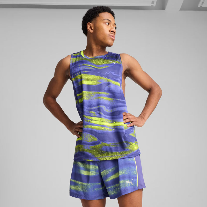 Stride confidently with PUMA's latest tank. Featuring ergonomic cutlines for maximum freedom, flatlocked seams to reduce friction, and dryCELL technology to keep you dry. Perfect for the everyday runner who values both performance and style.