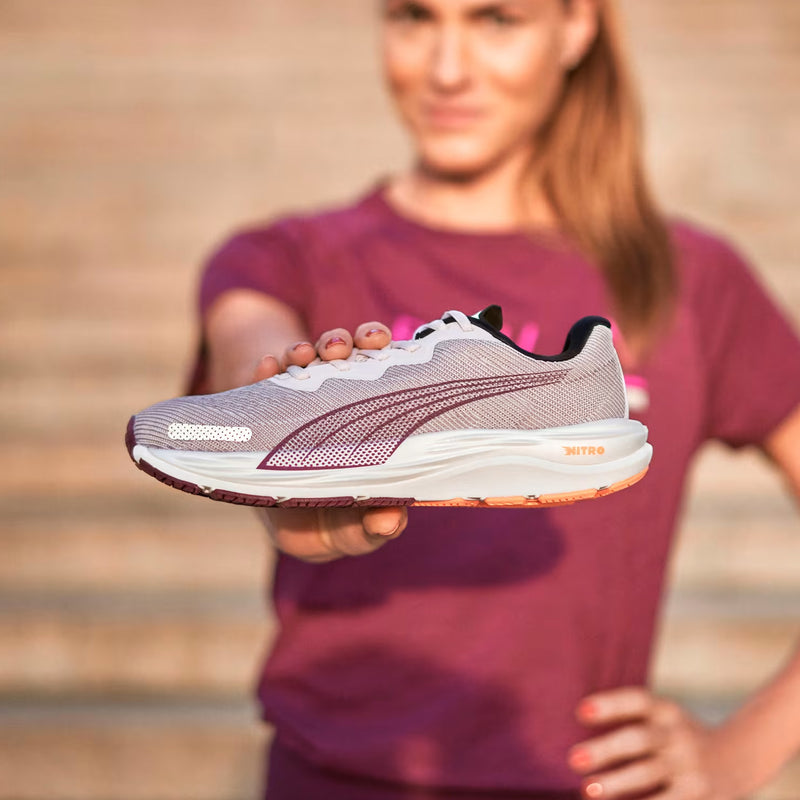 An all-in-one neutral running shoe for any distance, the Velocity NITRO 2 is a lightweight and sleek update to the Run PUMA roster. Featuring NITRO foam for exceptional responsiveness and ultimate cushioning, this upgrade to the original is a well-fitting and durable shoe for a smooth ride. Built for comfort at whatever speed, the versatile runner also provides enhanced visibility through reflective accents, so you can hit your stride on your time. PUMAGRIP offers multi-surface traction, from treadmill to track.