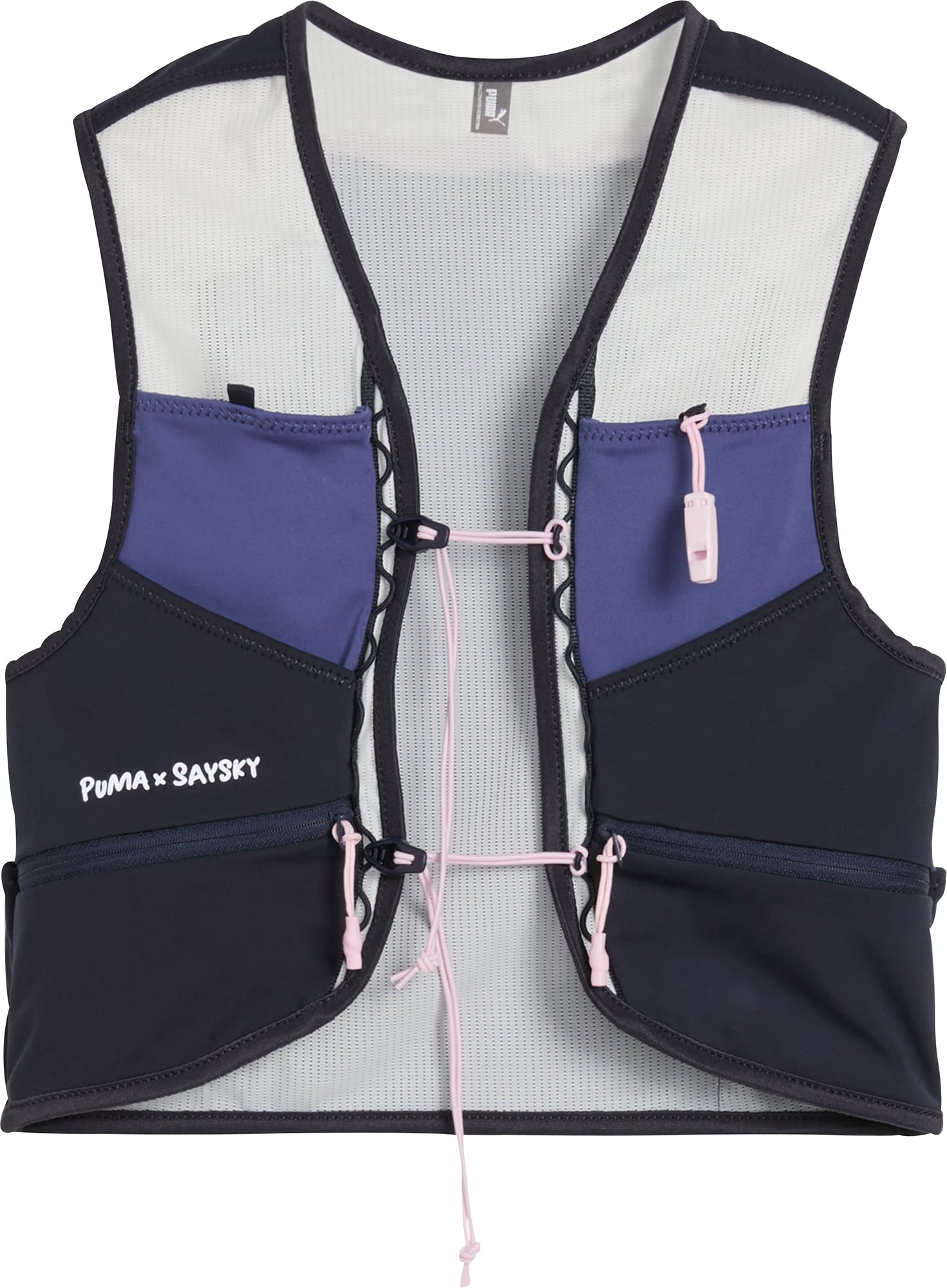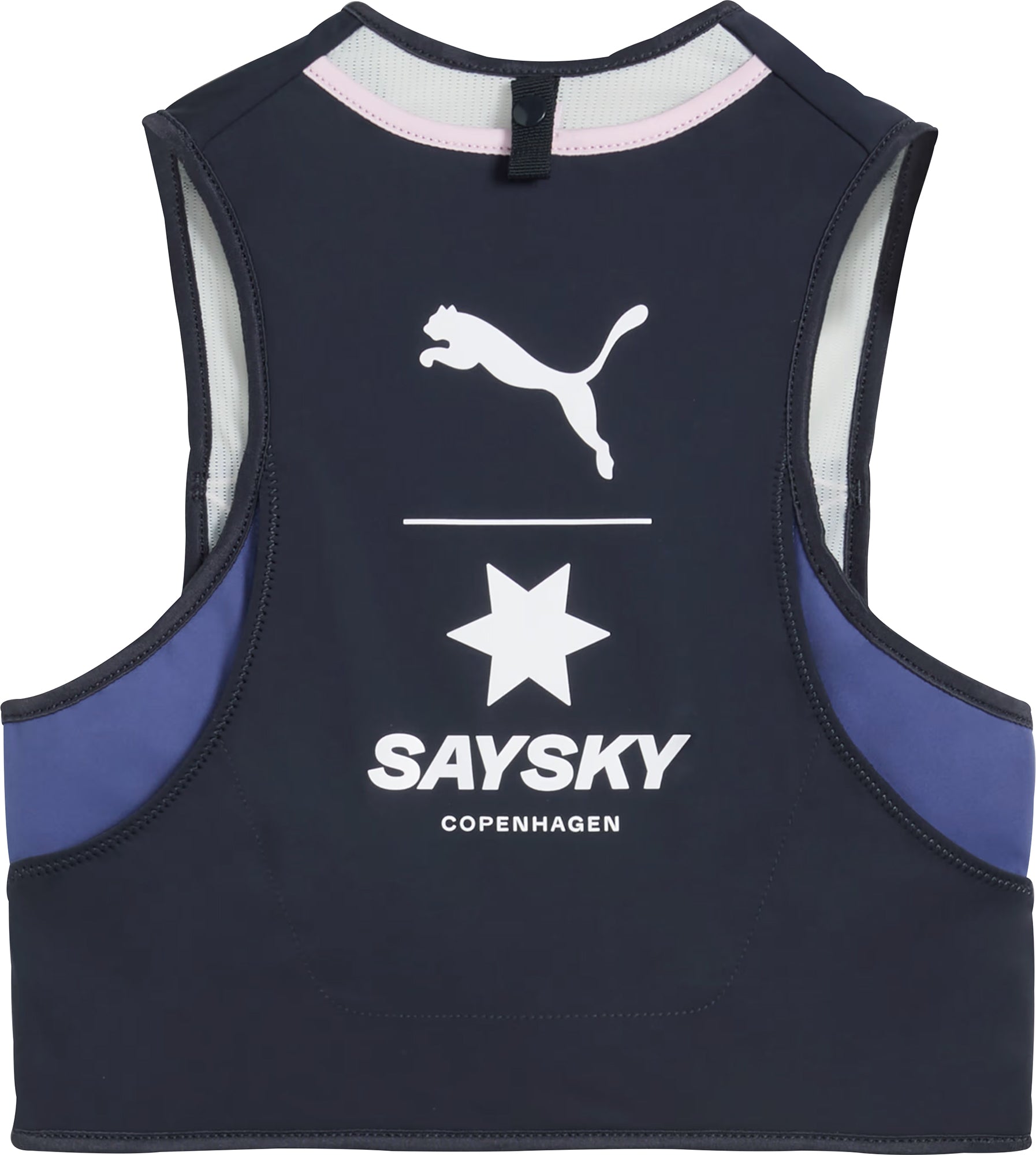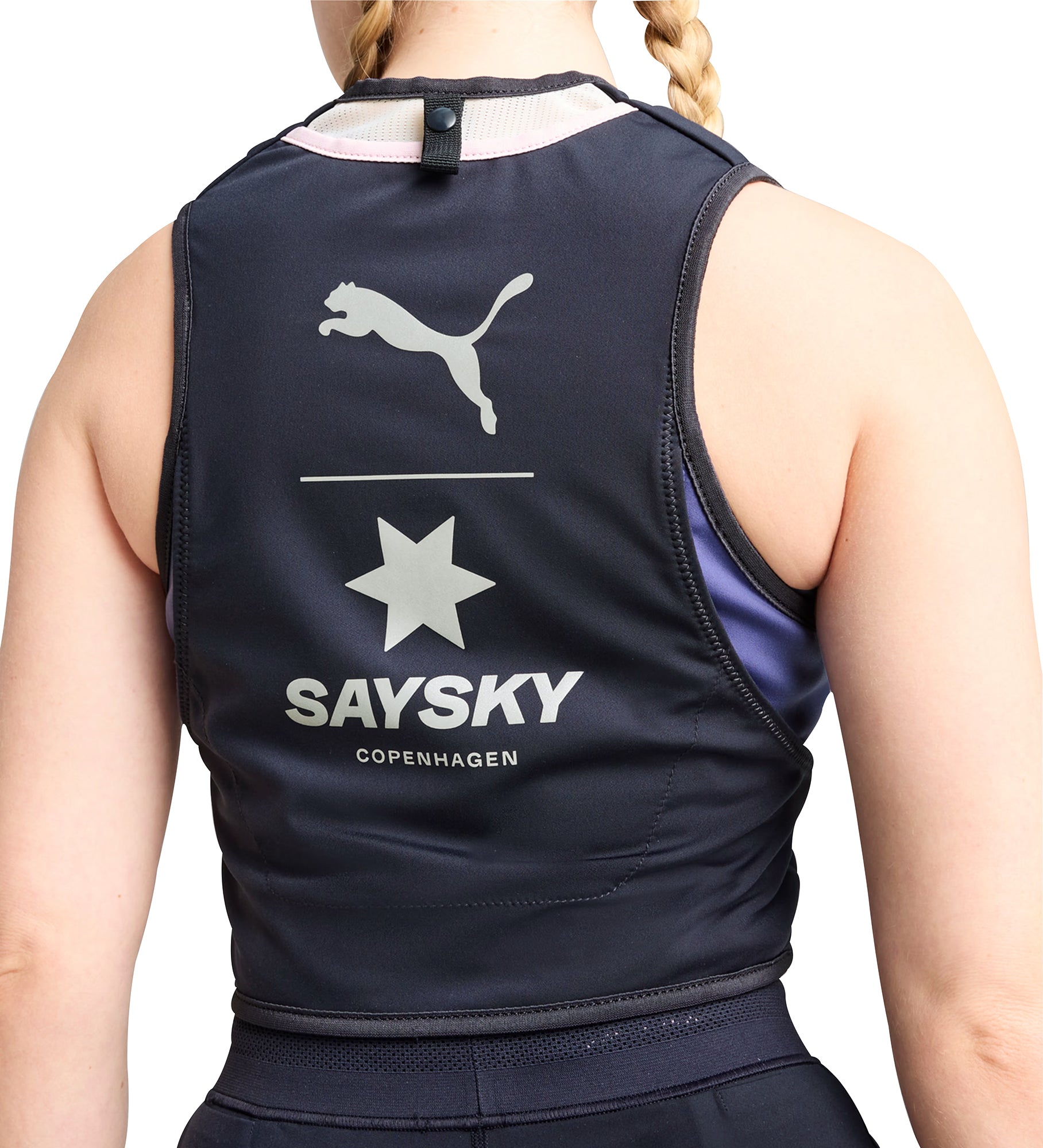 Every runner is a star – whether you're lacing up for the first time or running your 100th race. From tanks and tops to shorts and tights, PUMA x SAYSKY has something for every runner. Featuring a sleek, body-hugging fit, this PUMA vest keeps you on the move with ease. Enjoy quick access to essentials with multiple pockets and stay dry with moisture-wicking mesh.