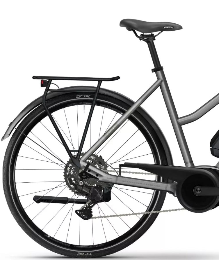 The mid-step frame offers a sleek, versatile look with confident handling - perfect for commuting, errands, or weekend rides. You get the right kit from the start: Shimano 9-speed gears, hydraulic disc brakes, integrated front and rear lights, full mudguards, and a pannier rack for carrying what matters (up to 27kg of it)!