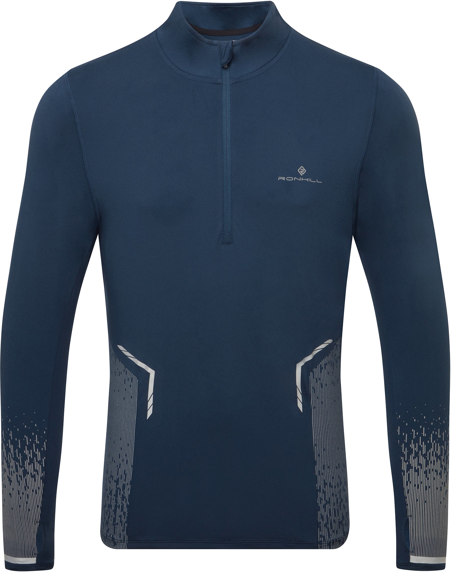 A lightweight, thermal base-layer designed to be worn next to the skin and ideal worn on cooler days when you need to be seen. The half-zip features a new iridescent reflective strips and a 360º reflective print. The fabric is a super soft polyester with a peached finish in modern marl look. Independent lab and wearer trials have provided very good wicking and evaporation results. The front zip allows flexibility for venting once you have warmed up on your run. This style additionally has a cosy high collar and thumb loops.