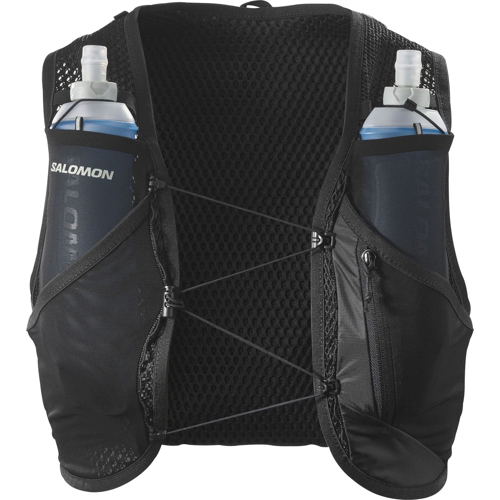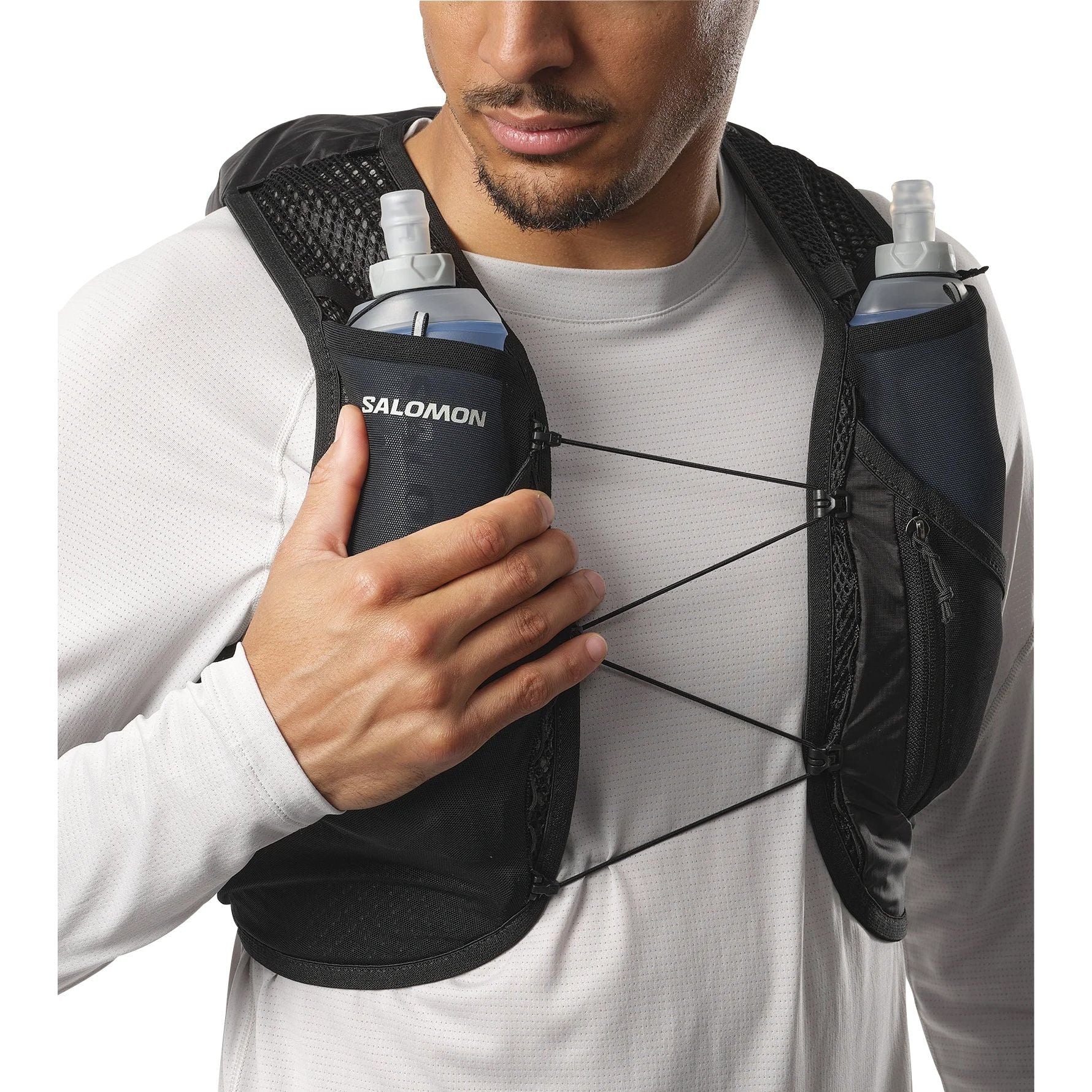 Featuring two strategic chest pockets for quick, on-the-go hydration. Two 500ml flasks included, also compatible with a 1.5 L bladder.