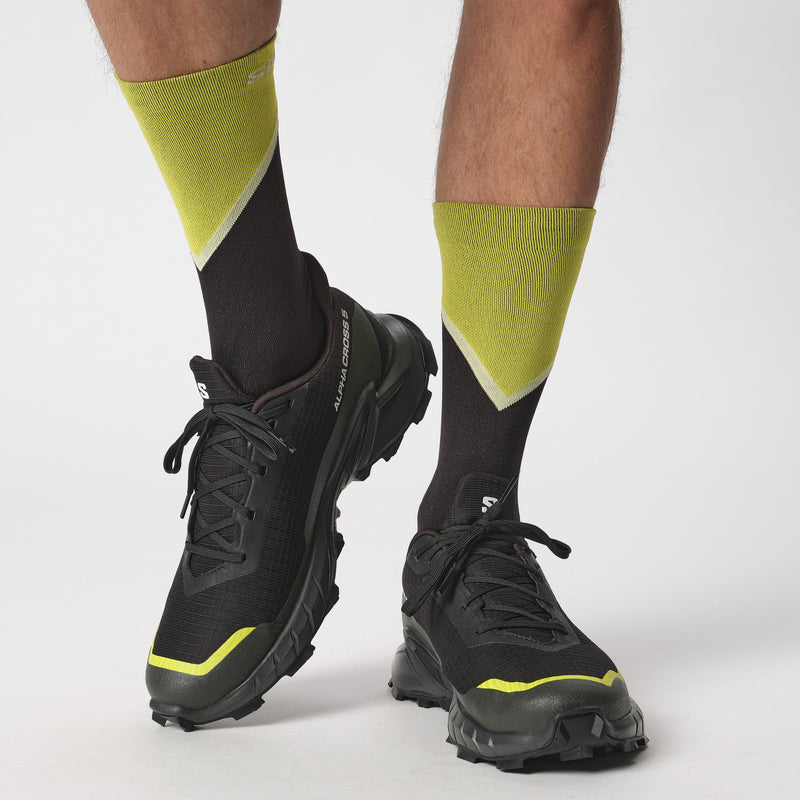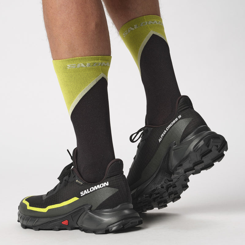 A versatile trail and all-round running shoe perfectly equipped for wet, muddy scrambles or neighbourhood laps. ALPHACROSS 5 GORE-TEX has a waterproof upper, deep, aggressive lugs for optimal grip and mud shedding and a softer midsole compound for comfort and long-lasting cushioning.