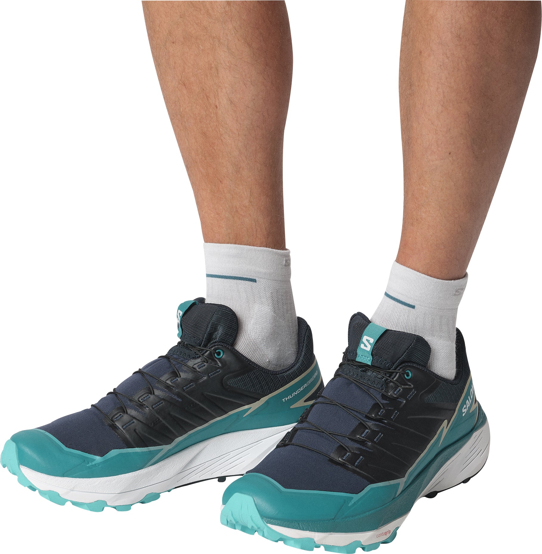 THUNDERCROSS is a trail shoe for a dynamic, cushioned ride with exceptional grip and precise foothold. Equipped with aggressive 5mm lugs to tackle any terrain, no matter how tricky, technical, or just downright nasty. Developed in the French Alps, tried and tested on everything from rolling terrain to rocky slopes or sticky single tracks.