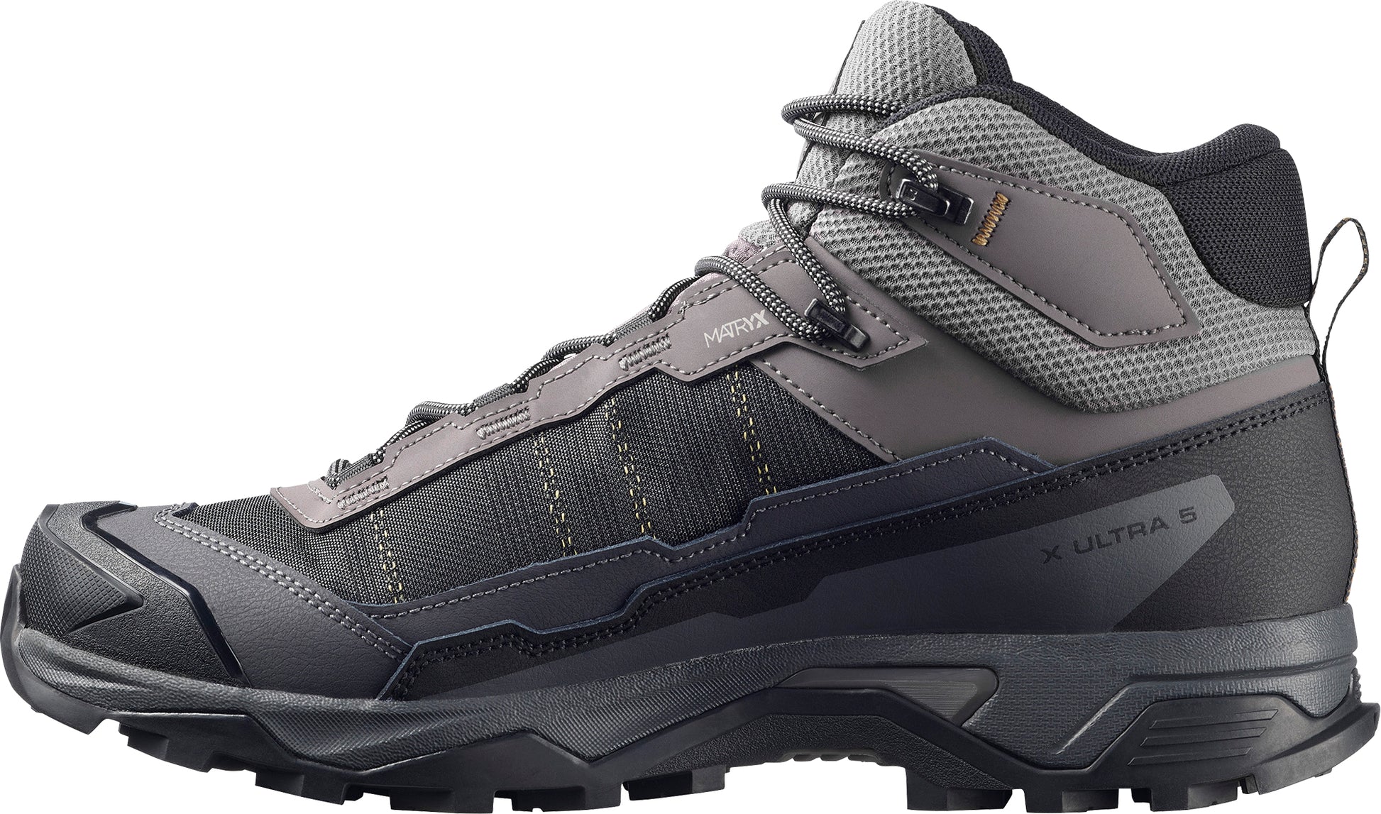 The X Ultra 5 Mid Gore-Tex is a dependable, confidence-boosting hiking ally. Lightweight yet stable, it's as good at charging up hills as it is at tackling descents. Designed to keep you safe and agile on trails, with an ultra-durable Matryx®️ upper, a long lasting Contagrip outsole for grip and a collar area tailored for lasting comfort.