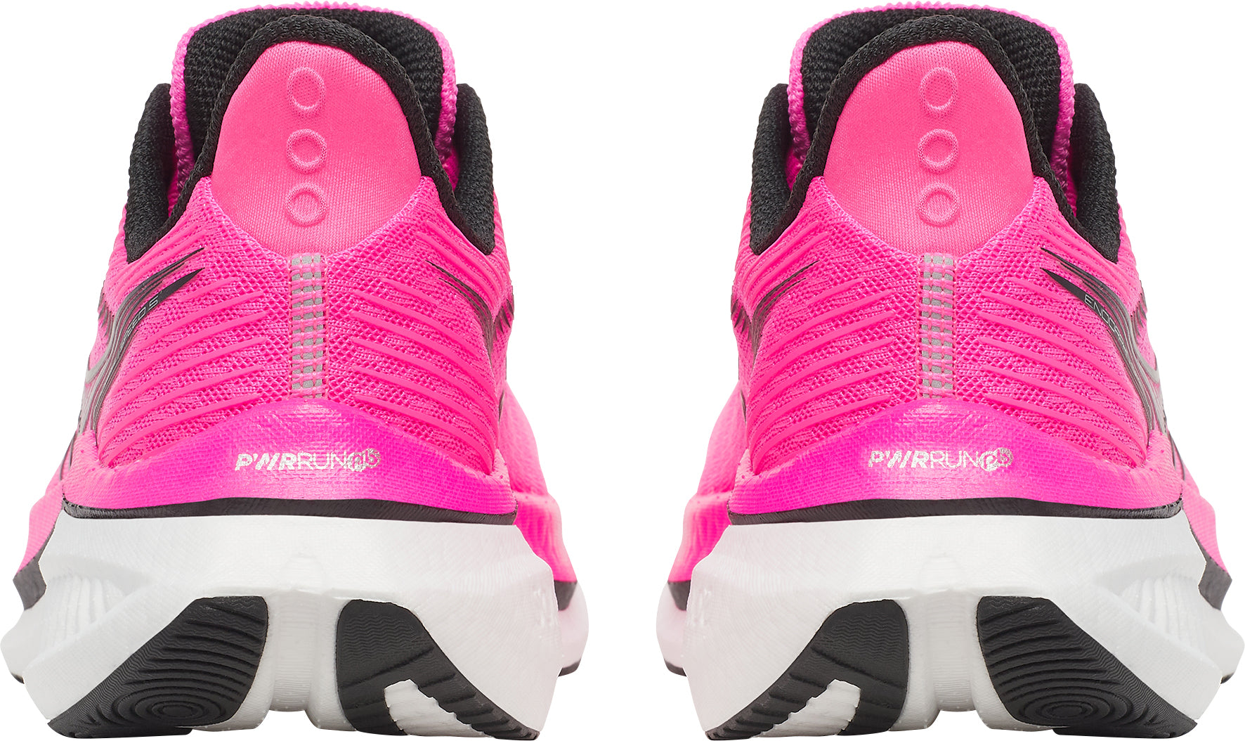 - Energy efficient PWRRUN PB foam bounces back with every step combined with a winged nylon plate that provides torsional rigidity while maintaining flexibility in the forefoot, making for a sure footed, snappy ride