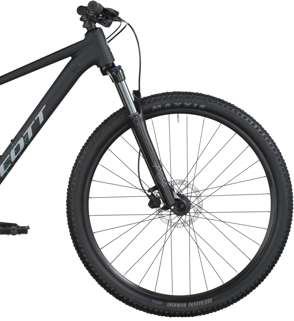 | Fork | Suntour XCT30-HLO, Black Stanchions, Reb. Adj., Lockout, 100mm travel |