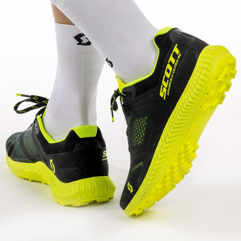 The SCOTT Kinabalu Ultra RC is our go-to shoe for Ultras and long training miles away from the big mountains. A combination of our Hybrid Traction outsole, which delivers straight-line power transfer on man-made trails, and the responsive cushioning from our Kinetic Foam midsole returning 14% more energy, plus the rock plate for protection create the perfect shoe for trail ultra marathons.