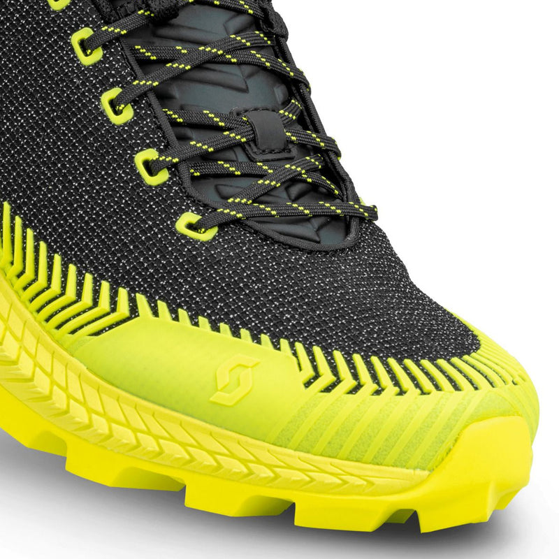 Designed for ultras, long training miles and everything in between when in the mountains. The SCOTT Supertrac Ultra RC's All Terrain Traction outsole has been created for superior forward and breaking traction on a variety of mountainous terrains. The Swiss-made schoeller®-dynamic fabric delivers high levels of comfort and durability, both essential in ultra running.