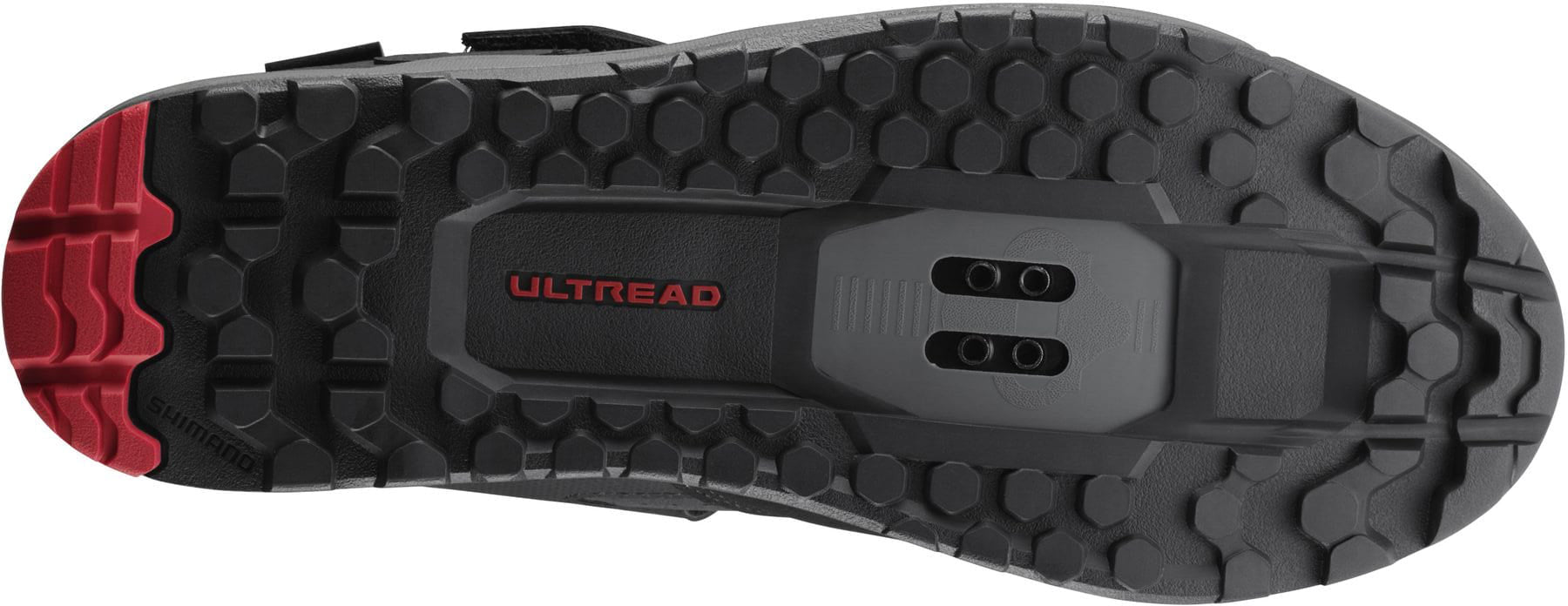 - Enduro-optimized Shimano ULTREAD GE® rubber compound and tread pattern deliver reliable pedalling and hiking traction