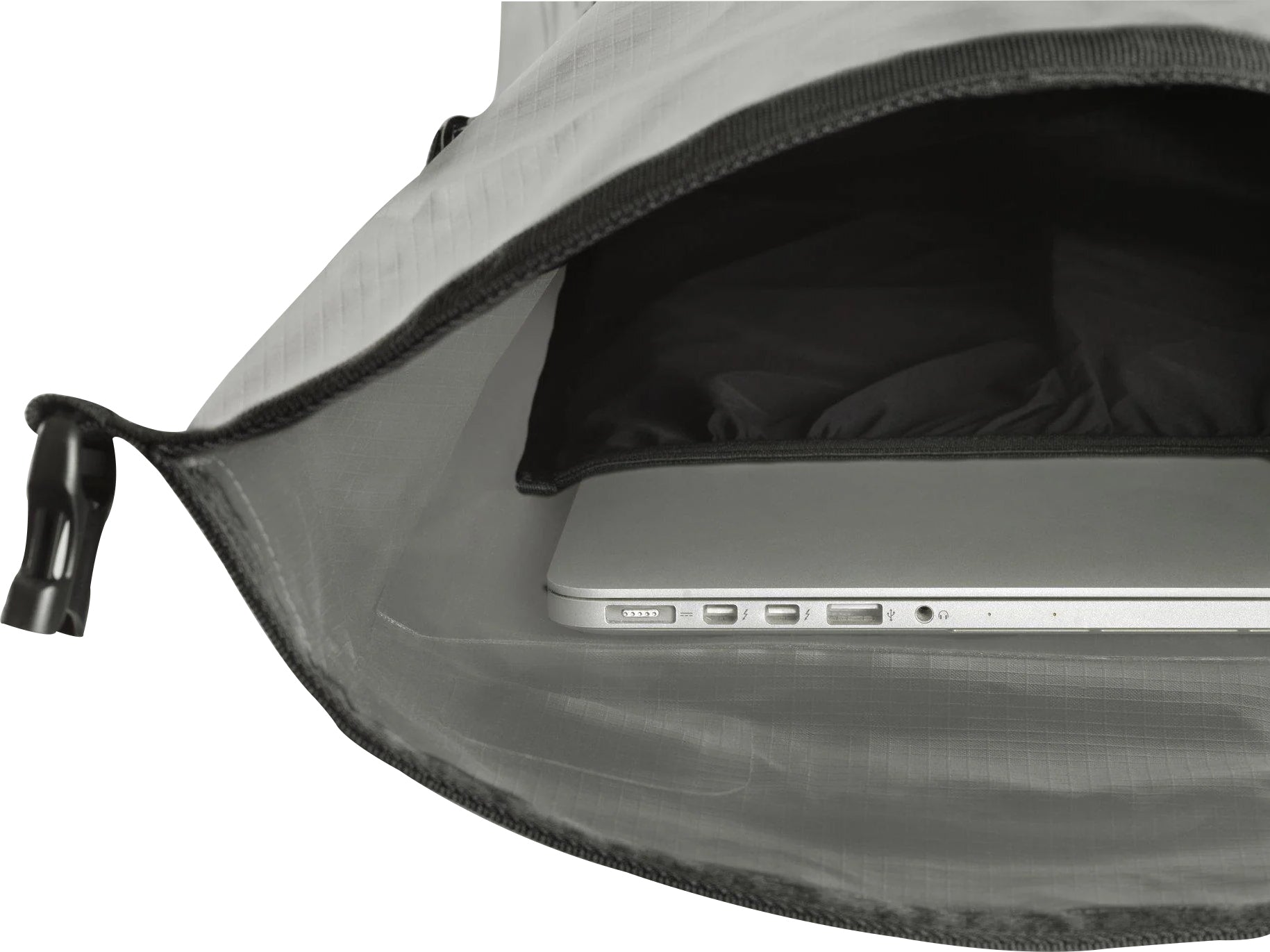 Orbit is made of robust, 420 denier, ripstop, double coated, waterproof material. This, combined with the watertight roll top closure keeps your gear safe at all times. The 13” laptop compartment is shockproof and protects your computer from impacts from all sides. Orbit has a waterproof, zippered internal pocket as well as a zippered external pocket to keep your most valuable gear protected.