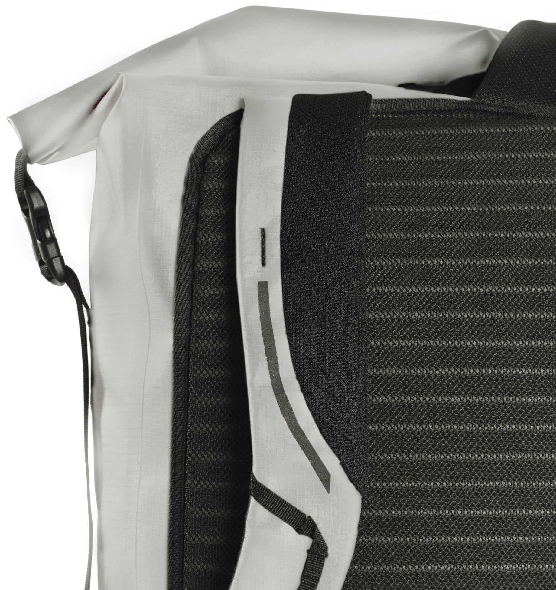 Orbit comes in a sober gray design that offers 360° visibility from all angles through reflective details. In addition to this, you can use the lash points on the back or front to easily snap on visibility lights.